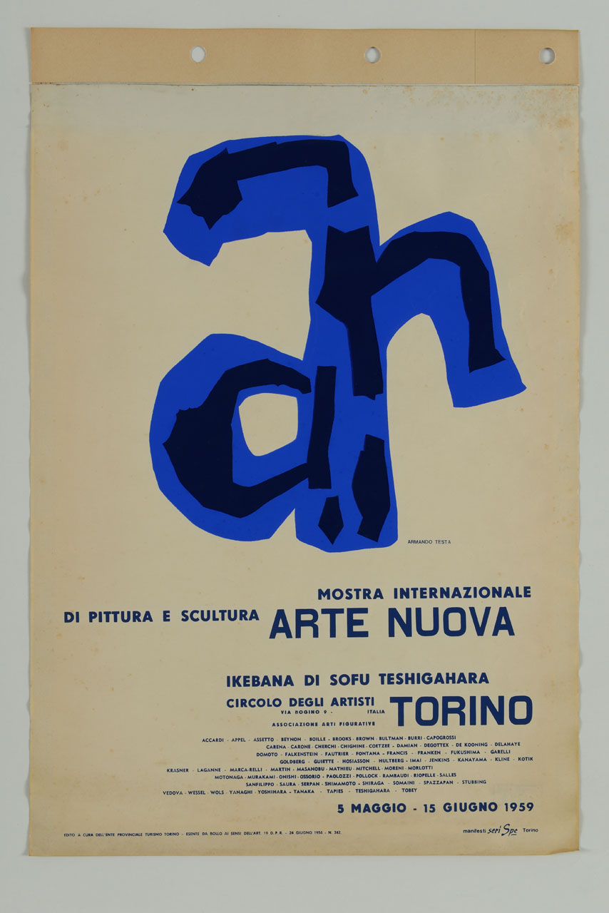 Lettura iconografica: riproduzione fotografica di dipinto. Categoria merceologica/ tipo evento: manifestazioni culturali; mostre; mostra di pittura; turismo; enti di promozione turistica. Nomi: Ente Provinciale del Turismo di Torino; Circolo degli artisti; Armando Testa; Sofu Teshigahara. Luoghi: Torino; palazzo al Valentino