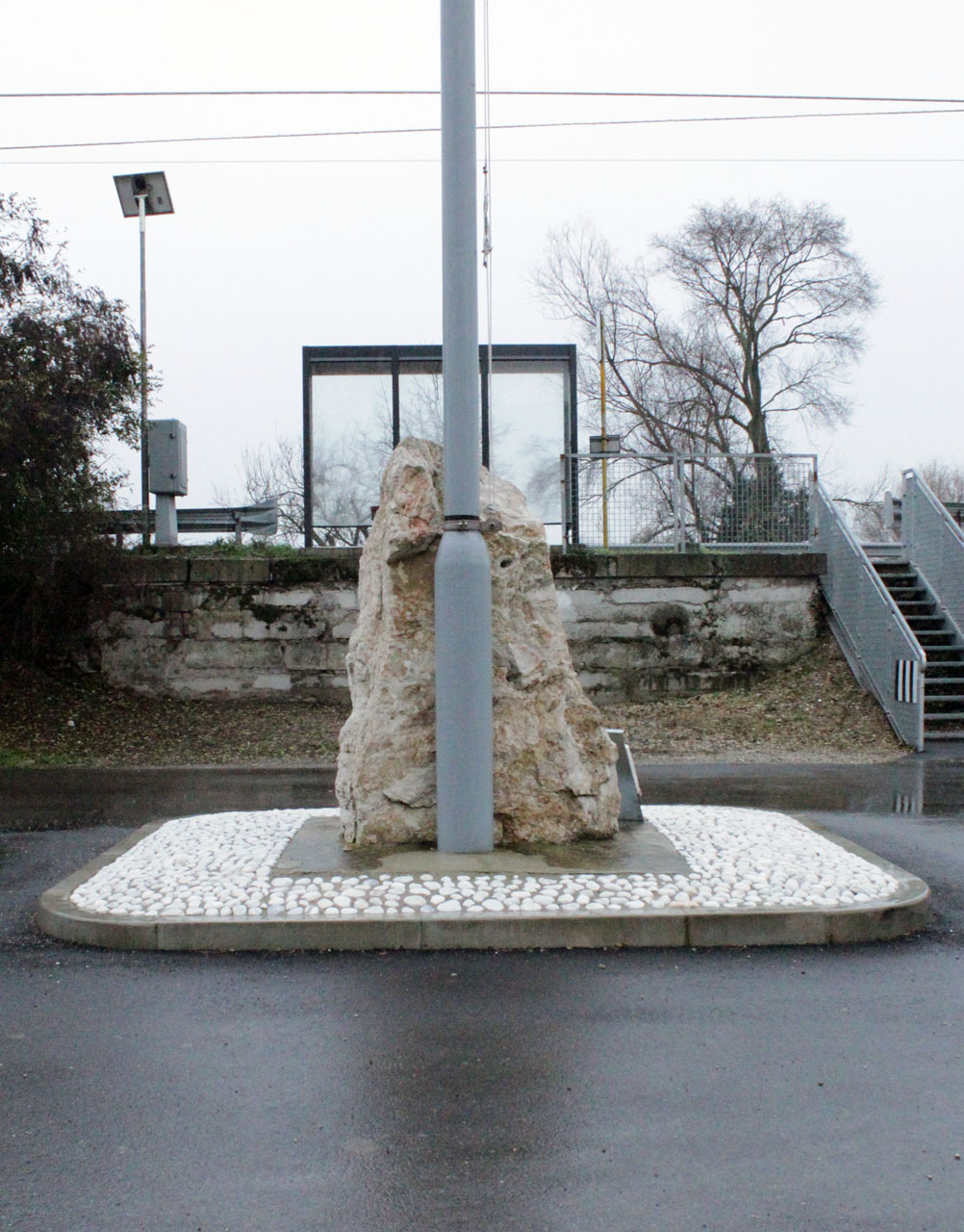 Monumento a cippo con lapide in appoggio su supporto metallico