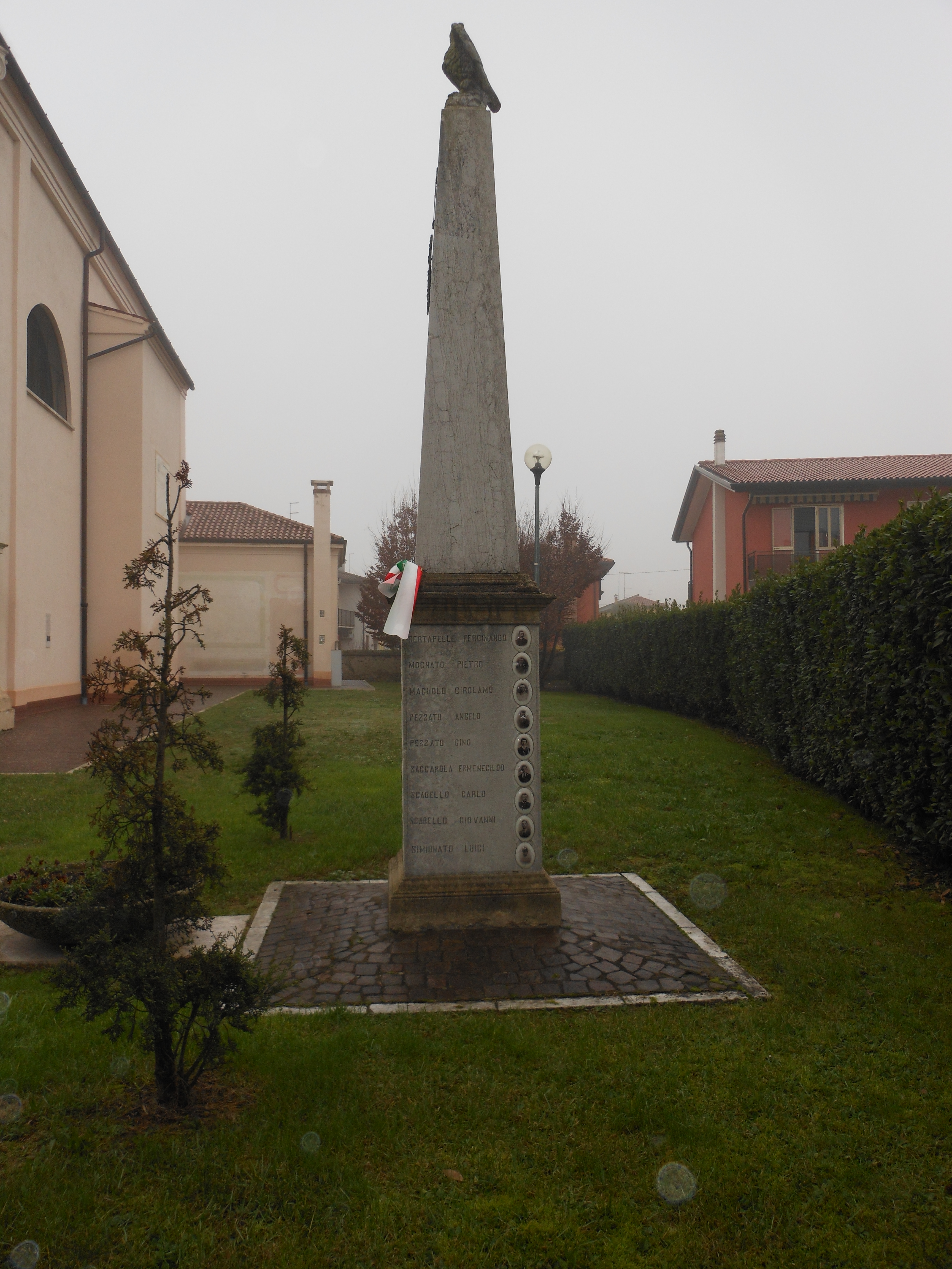 Monumento commemorativo ad obelisco nel cui corpo centrale, sui quattro lati, sono riportati i nomi e le foto a mezzo busto dei caduti di Trivignano della Prima Guerra Mondiale. Il pyramidion presenta sulla facciata principale la dedica, l'emblema della Repubblica Italiana e una croce latina. In cima è posta un'aquila in bronzo