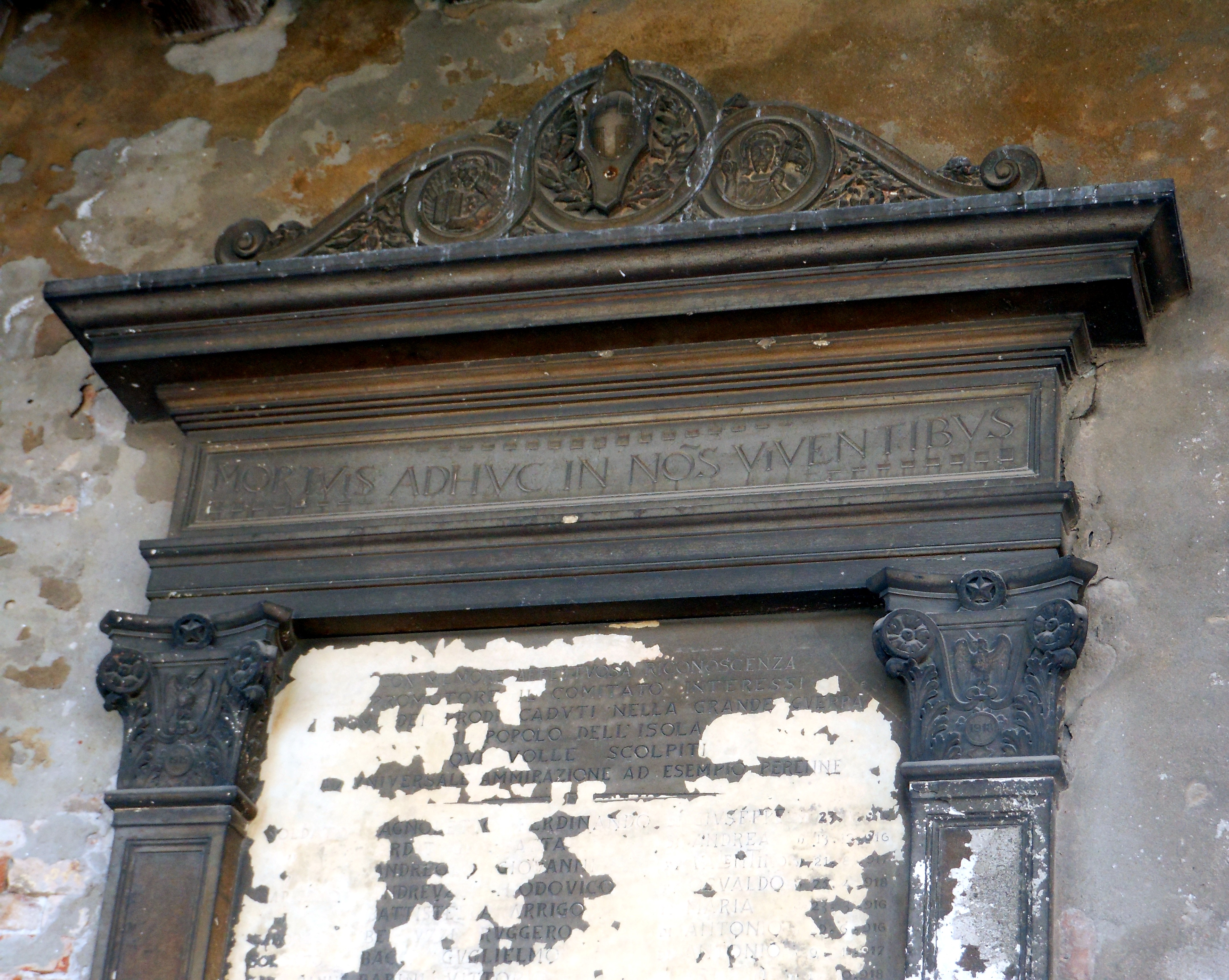 - NOTIZIE STORICO CRITICHE Il 28 luglio 1919 il Comitato Interessi dell'Isola della Giudecca fece domanda al Municipio di Venezia di poter realizzare una lapide in memoria dei caduti dell'isola, su progetto dell'architetto Ambrogio Narduzzi. Il 3 Agosto 1919 si tenne l'inaugurazione, preceduta da una solenne funzione alle ore 11.00 (Vedi Archivio Comunale Celestia, Venezia, posizione: IX 7/7 1915-1920)