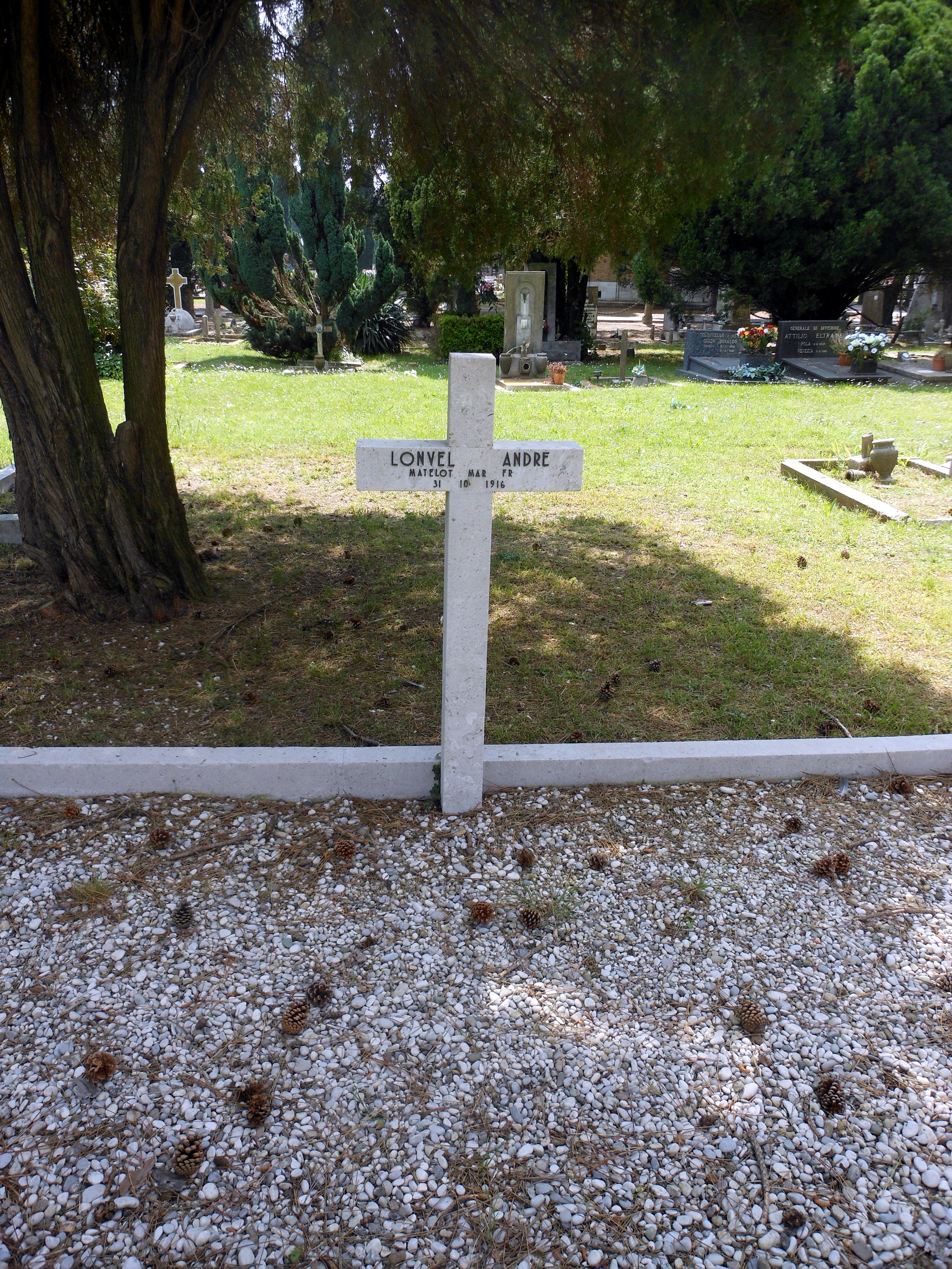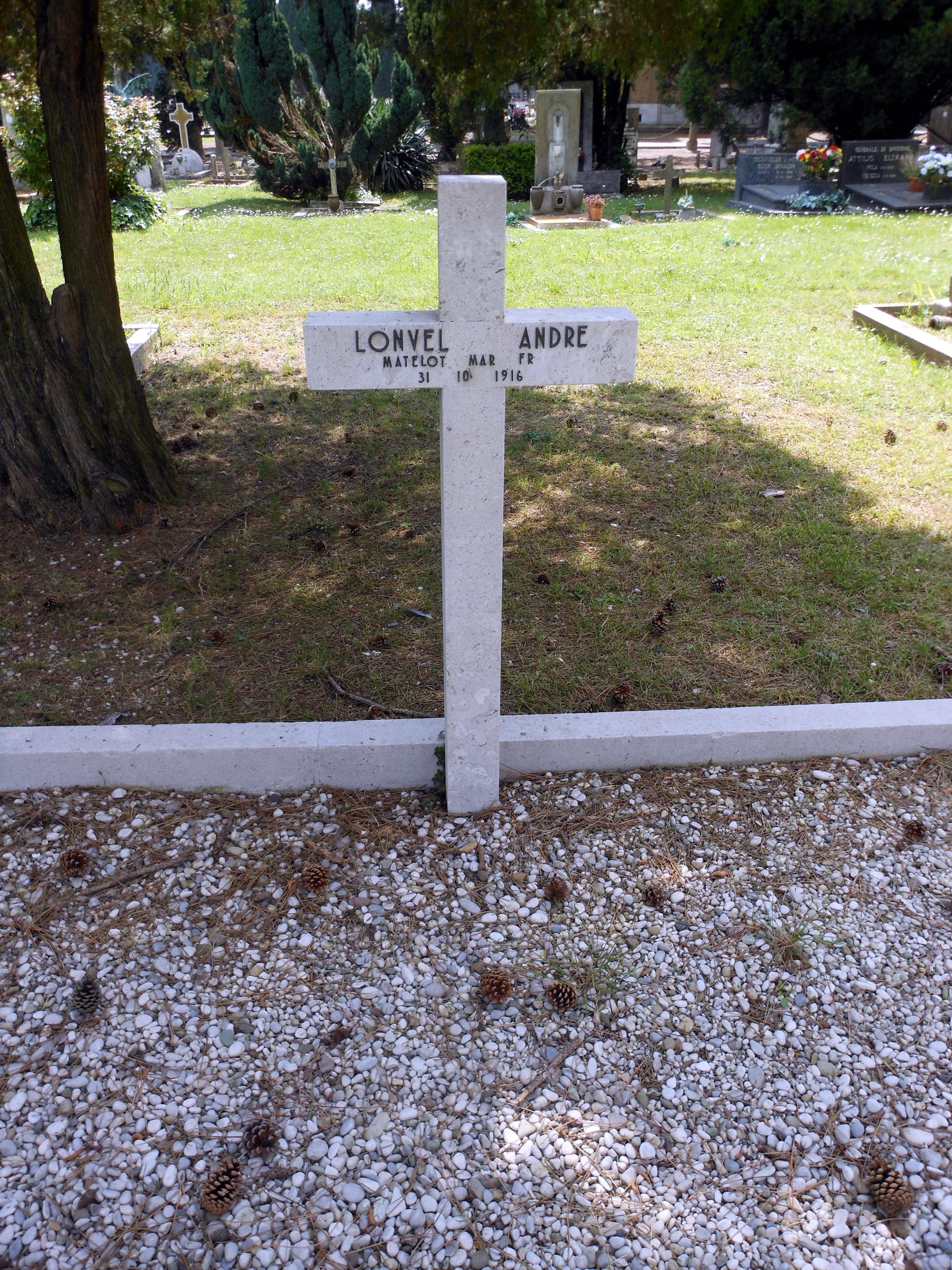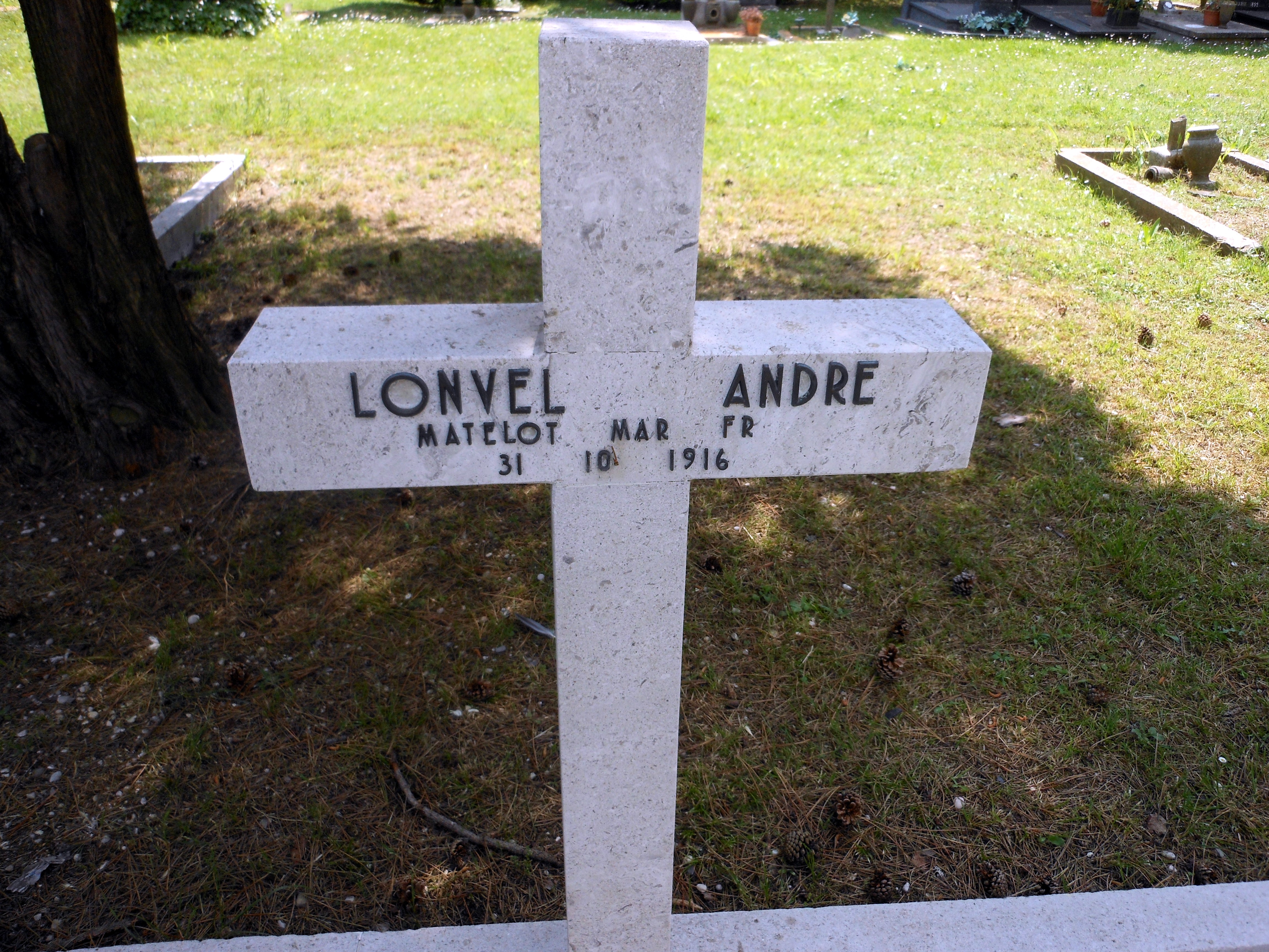 - ISCRIZIONI centrale - LONVEL ANDRE / MATELOT MAR FR / 31 10 1916 - maiuscolo/ numeri arabi - a caratteri applicati in bronzo -