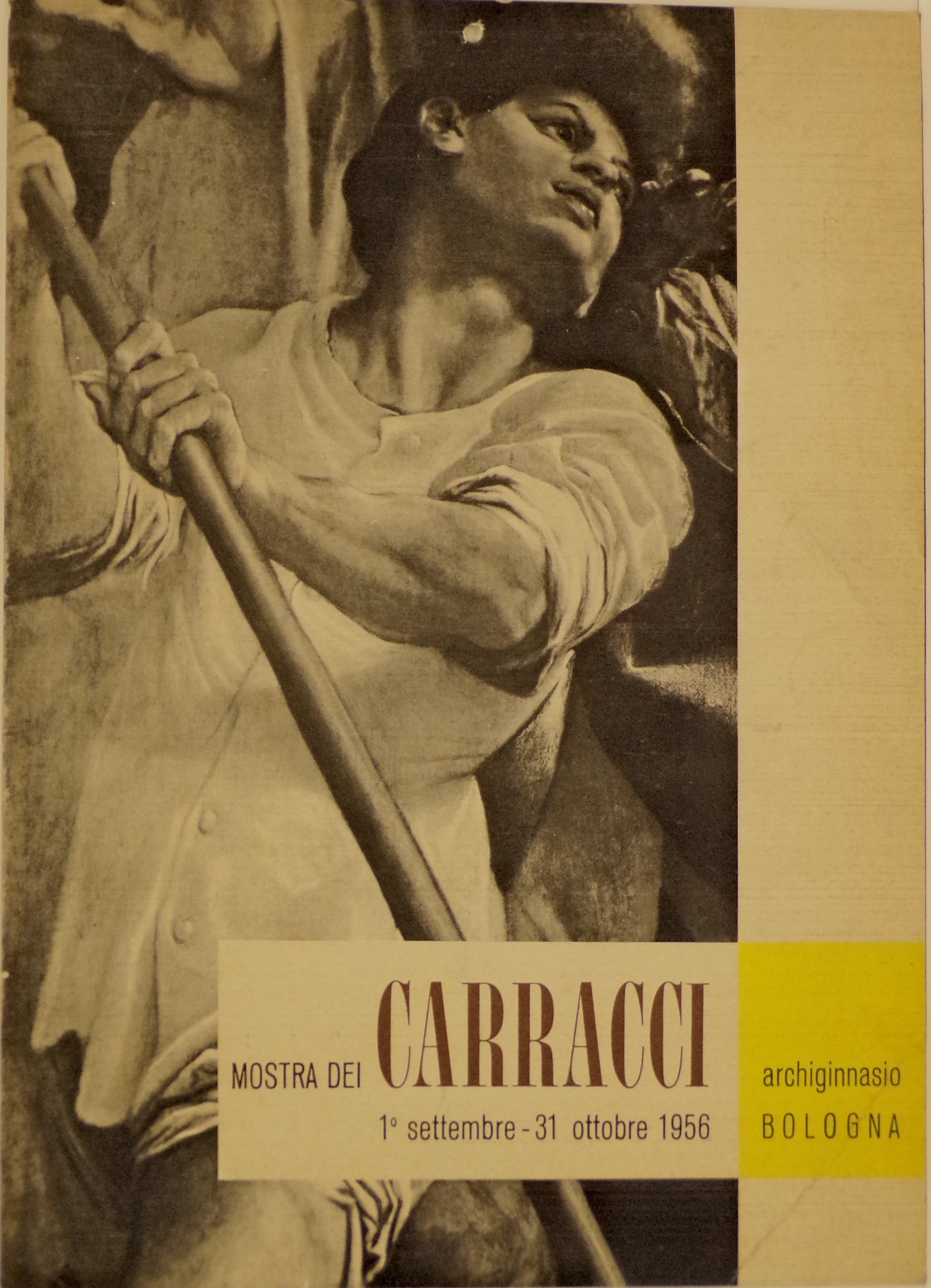 Lettura iconografica: riproduzione fotografica di Annibale Carracci, "Atlante". Louvre, Parigi; sul verso: riproduzione fotografica di Ludovico Carracci, "Predica del Battista", dettaglio. Pinacoteca Nazionale, Bologna. Categoria merceologica/tipo evento: evento culturale; evento espositivo; mostra monografica. Nomi: Carracci; Archiginnasio di Bologna; S.p.A. Poligrafici il Resto del Carlino. Luoghi: Bologna