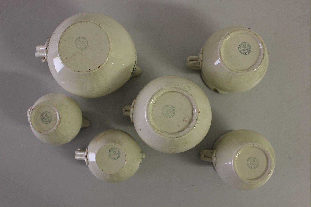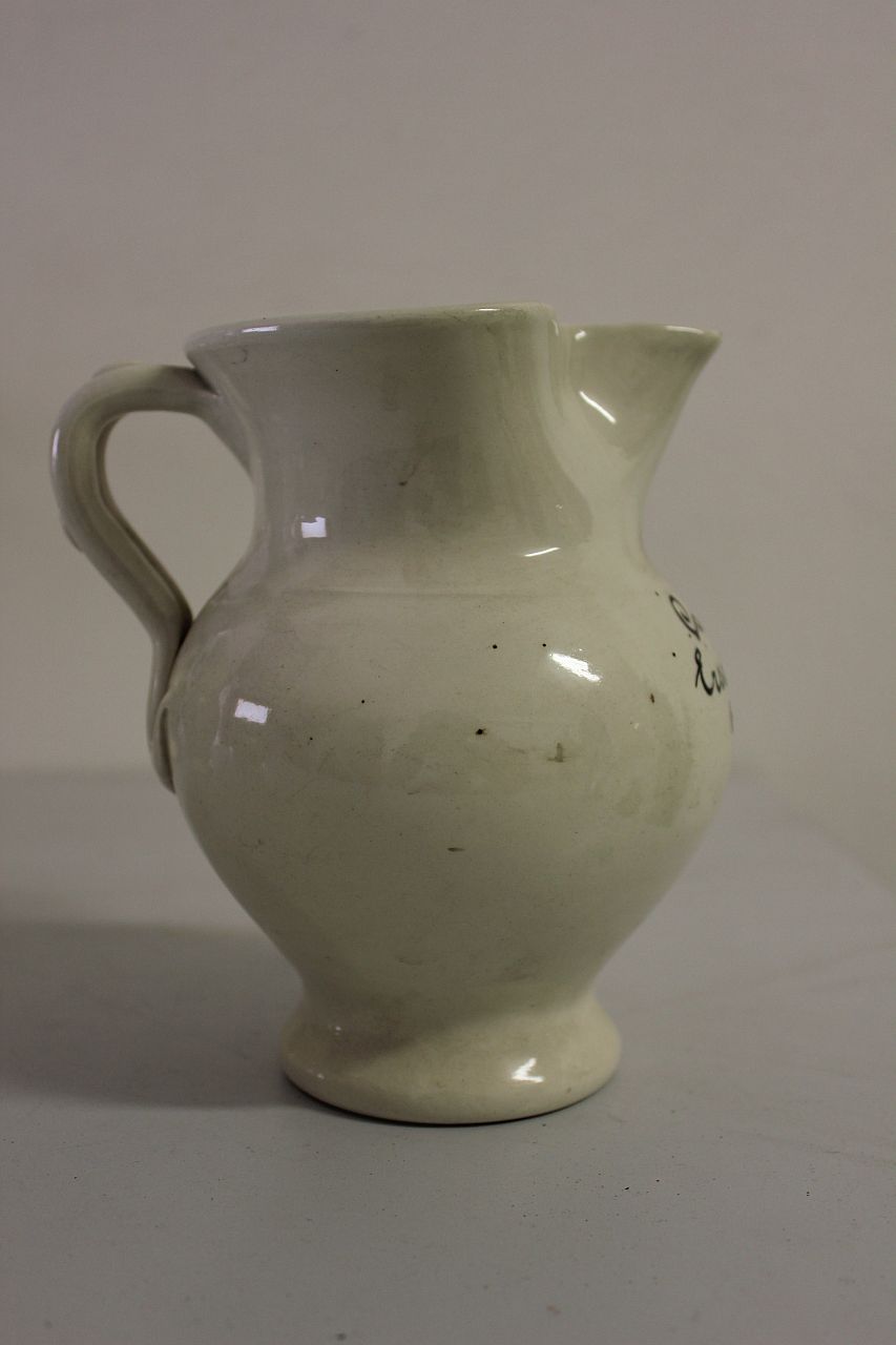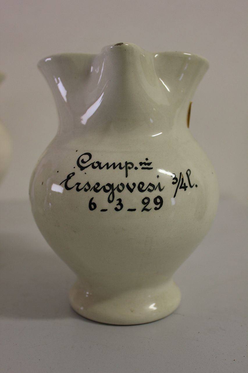 Sei boccali in ceramica con diverse grandezze, quattro con collo a pizzico e manico a cordicelle sinuose, mentre gli altri due con collo largo e allungato. Ciascuno sulla pancia al centro riporta l'iscrizione con il tipo di campione, capacità e data