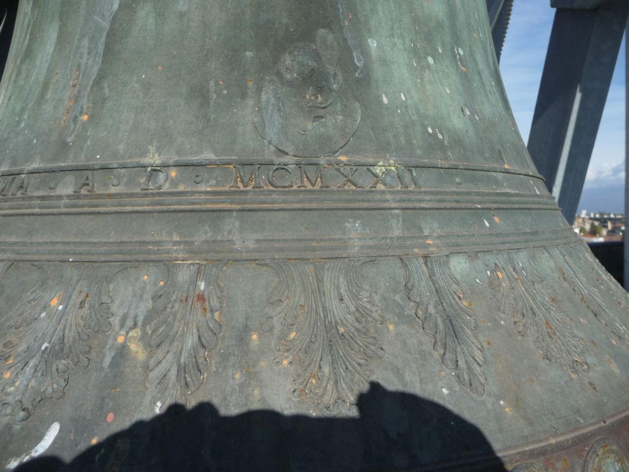 - ISCRIZIONI corona/ sotto le maniglie - FREGIT FUROR HOSTIS AT HOSTIS AB AERE REVIXI ITALIAM CLARA VOCE DEUMQUE CANES/ UDINE PARROCCHIA DI SAN NICOLO' - capitale - a caratteri applicati -