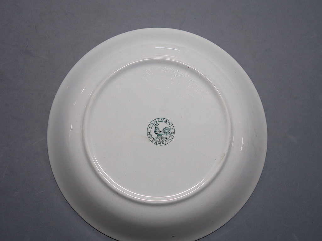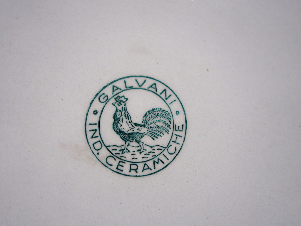 - STEMMI sotto alla base - di fabbrica - Marchio - Ceramiche Galvani - 1 - gallo andante entro corona circolare con la scritta GALVANI/ IND. CERAMICHE; timbrato