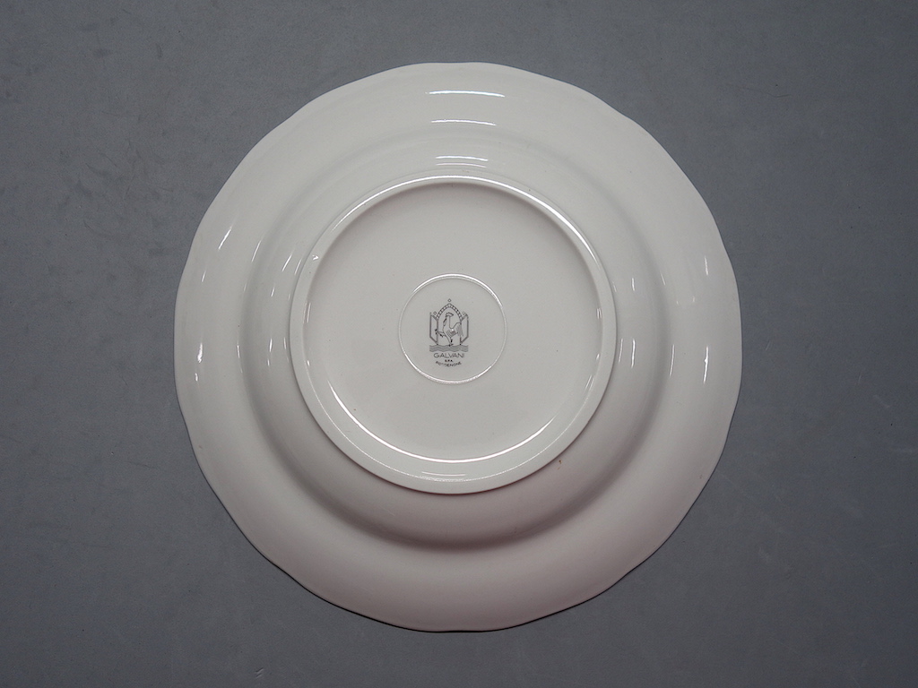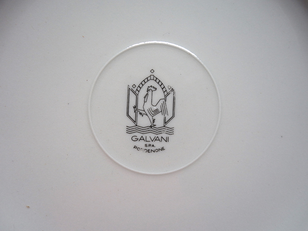 - STEMMI sotto alla base - di fabbrica - Marchio - Ceramiche Galvani - 1 - gallo andante entro stemma di Pordenone sopra alla scritta GALVANI/ HAHN/ PORZELLAN; timbro