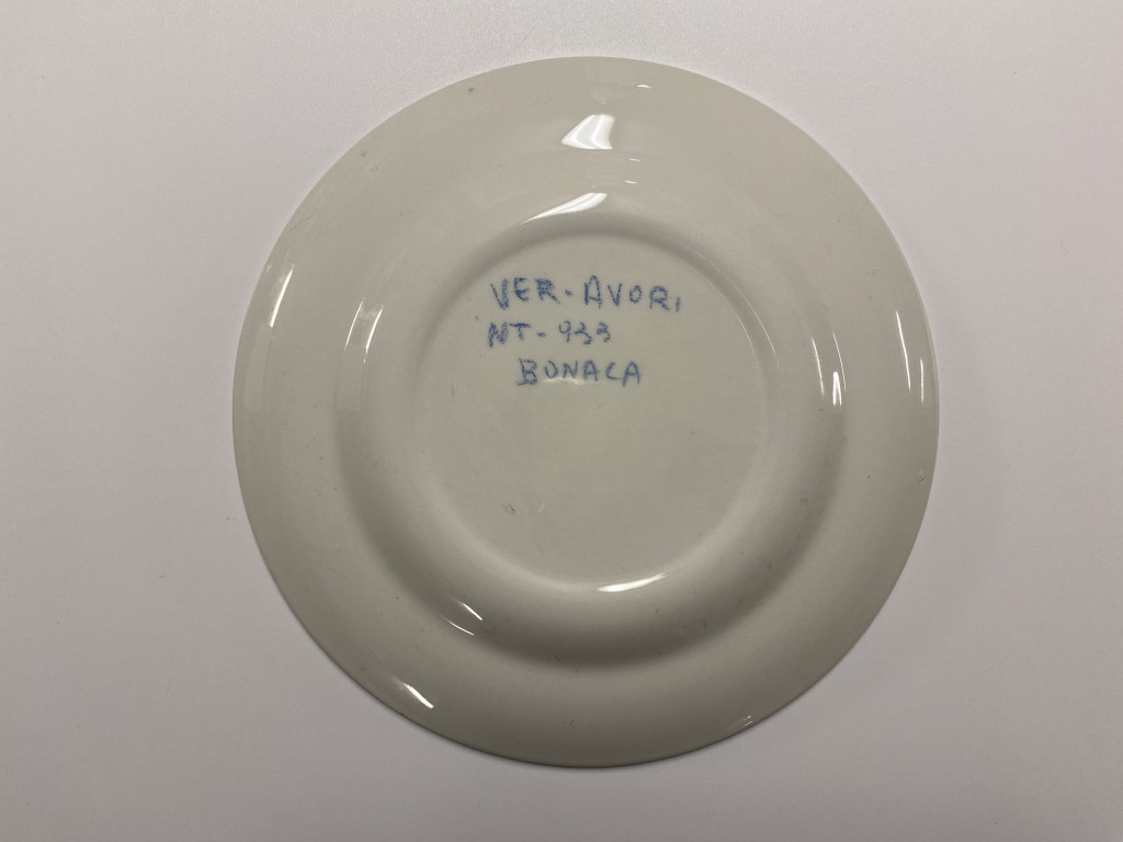 Piatto con ala in rilievo a raggiera e mezze corolle; in avorio