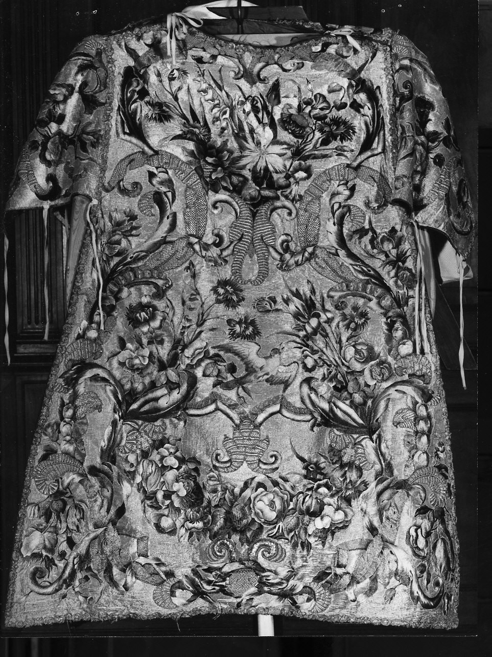 - NOTIZIE STORICO CRITICHE Manifattura ligure del sec. XVII, particolarmente significativo per la finezza del ricamo e per il fondo operato in trapunto d'argento. Morazzoni ne pubblica una tunicela fra le più interessanti opere del ricamo ligure genovese. Venne eseguito, secondo la tradizione, dalle monache di Santa Teresa o dello Spirito Santo di Savona