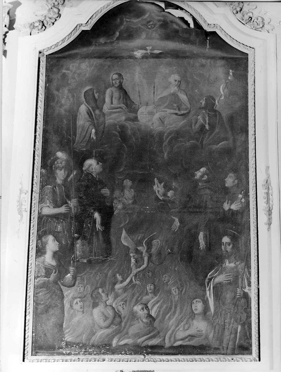 - NOTIZIE STORICO CRITICHE Anche se popolare, l'autore non è privo di una certa grazia e piacevolezza, specie nei tratti di qualche figurina di fondo, come S. Giorgio o S. Apollonia.Anche la raffigurazione delle anime purganti, pur nella sua ingenuità, è meno approssimativa di molti dipindi del genere.L'autore sembra il medesimo della piccola tela della canonica della Chiesa Parocchiale di Ameglia, raffigurante la Madonna, Bambino e Santi