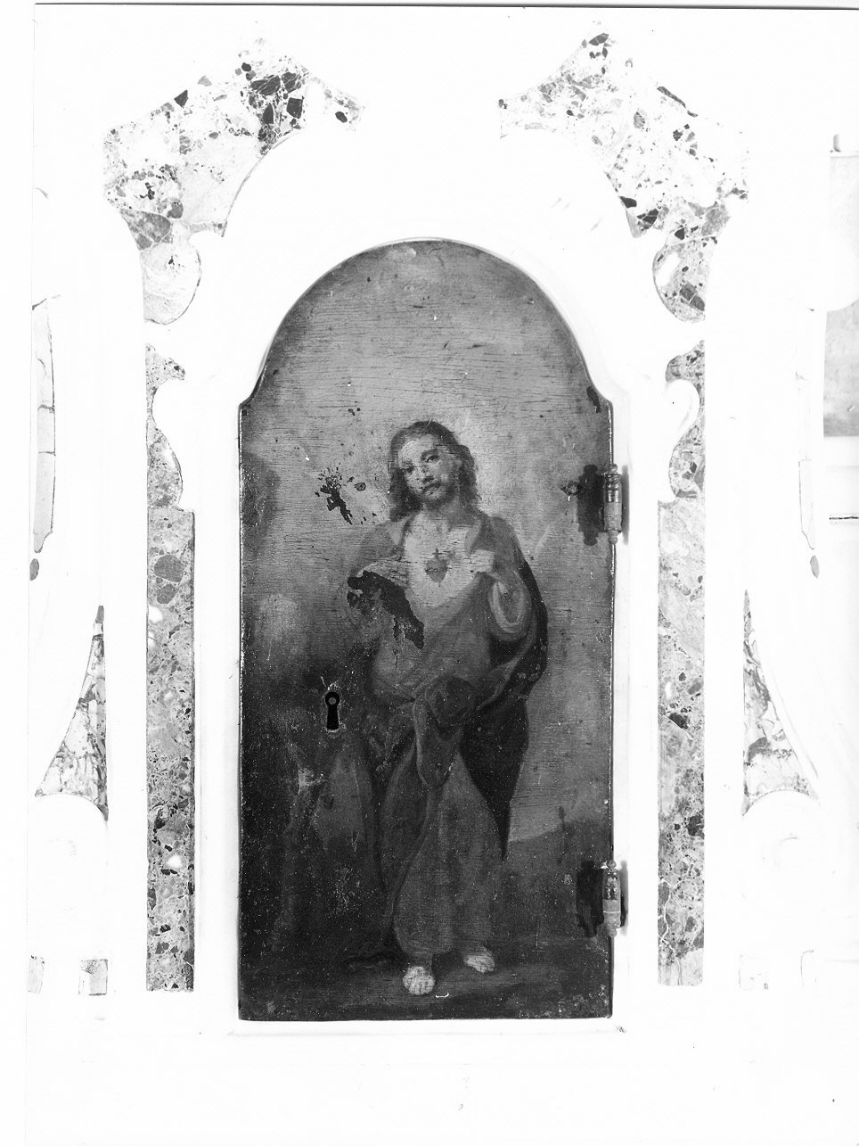- NOTIZIE STORICO CRITICHE La porticina è probabilmente coeva al tabernacolo; il tipo di pennellata rapida e le lumeggiature sono, infatti, riconducibili al '700. Rientra in un tipo di pittura devozionale senza particolari caratteristiche che esula da ogni ricerca più specificamene artistica