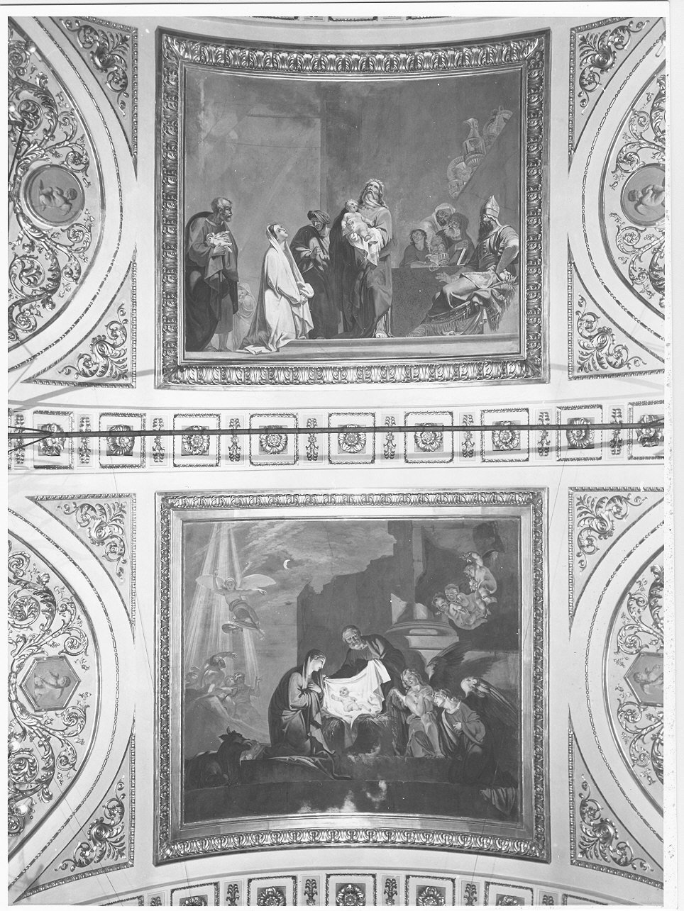 - NOTIZIE STORICO CRITICHE Le fonti locali (cfr. Rollino Ferretto, 1907) riportano: "...fu scritto (per affidare l'esecuzione degli affreschi) al Benvenuti di Firenze che, essendo trattenuto da lavori si esibì di mandare in sua vece alcuno de' migliori fra suoi allievi... la scelta cadde su N. Cianfanelli...mancavano appena otto mesi alla celbrazione delle feste cinquantenarie onde bisognava far presto. Or è questo precisamente il difetto principale che si appunta al Cianfanelli, la precipitazione...". Ogni scena è caratterizzata da colori grigi e lividi. Lo sfondo è sempre plumbeo e l'ambiente ridotto all'essenziale; su questo sfondo e in questa luce sono raffigurati, sempre isolati i vari personaggi dalle vesti a colori vivaci, rossi, verdi, blu, ma sempre plumbei. E' frequente il ricorso ad effetti di controluce o di forte illuminazione