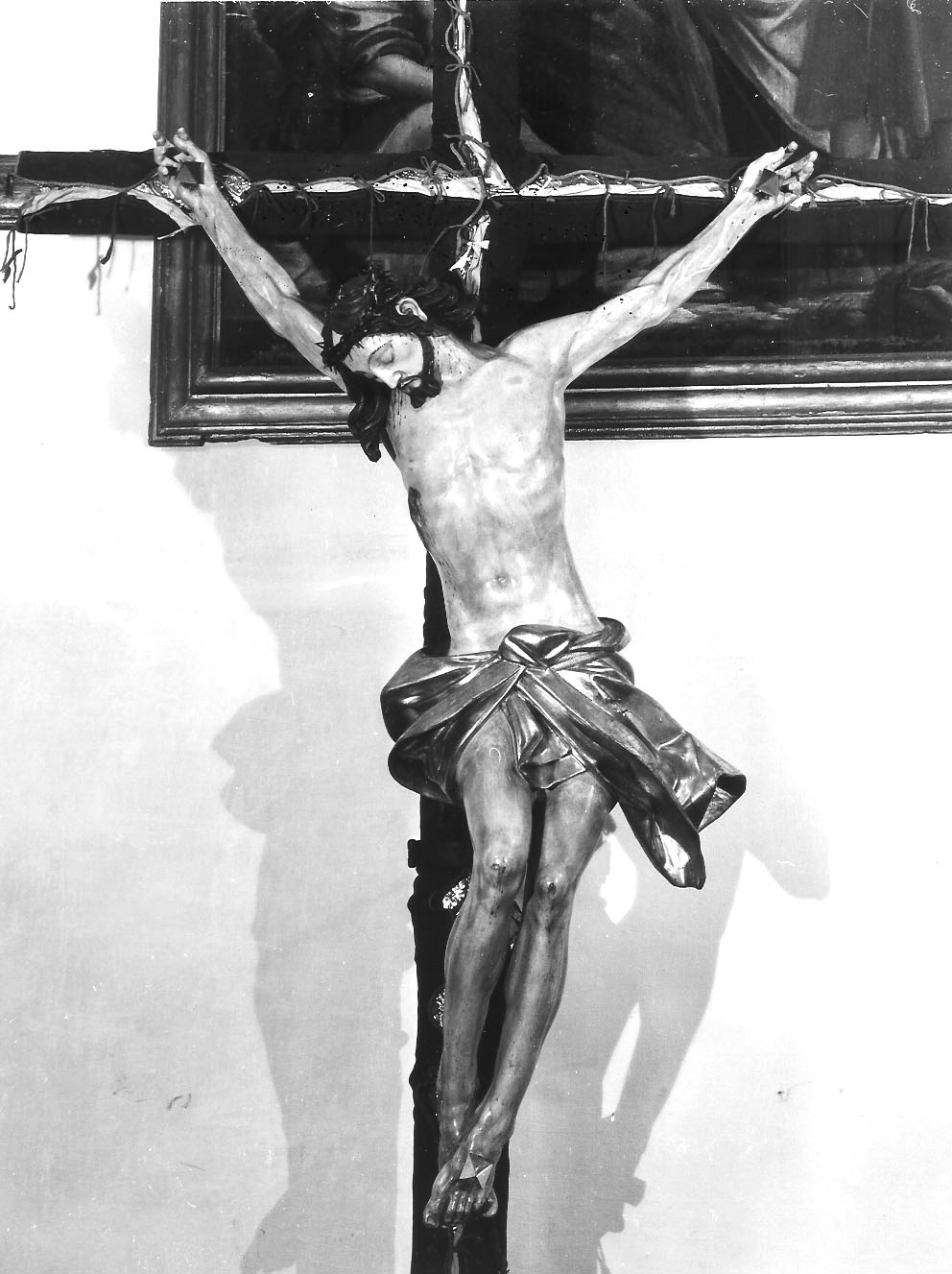 - NOTIZIE STORICO CRITICHE Nella figura del Cristo si riscontra chiaramente un modello maraglianesco, vedi il fluire del corpo che si incurva, il frastagliato se pur un po' rigido perizoma: la policromia che insiste su tonalità livide e grigiastre, evidenziando con insistente realismo le piaghe e il sangue è dovuta ad un intervento posteriore