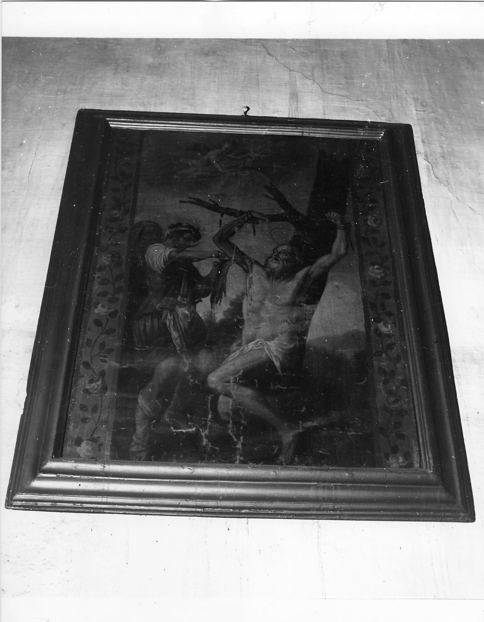CORNICE IN LEGNO INTAGLIATO E DORATO. GHIRLANDE FLOREALI SONO DIPINTE SUI MARGINI LATERALI DELLA TELA
