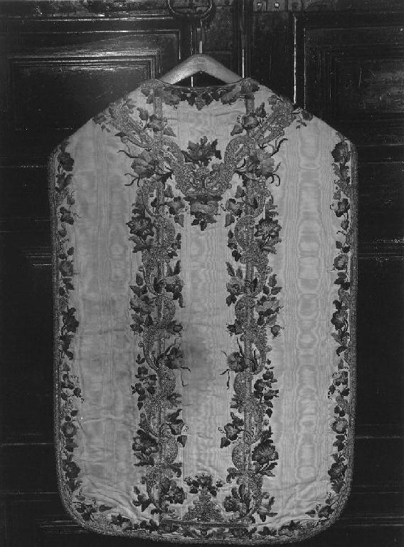 PIANETA.GROS DE TOURS (CREMA) MAREZZATO/ RICAMATO (RICAMO RIPORTATO) FILO D'ORO (FILATO) FILO DI SETA (ROSA/ VERDE/ VIOLA/ AZZURRO SFUMATI).FODERA TAFFETAS DI SETA (ROSSO)