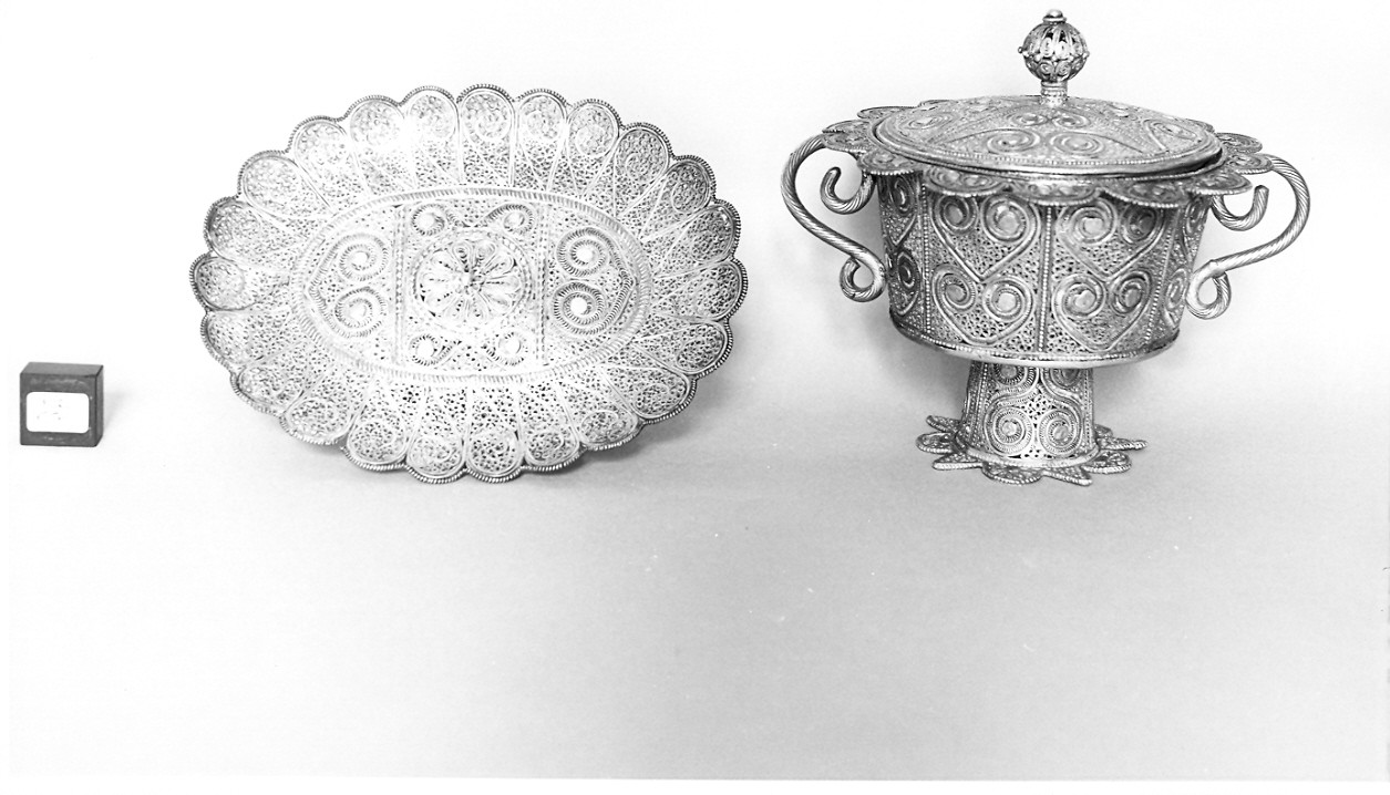 Piatto ovale in filigrana d'argento; spesso filo ritorto appiattito