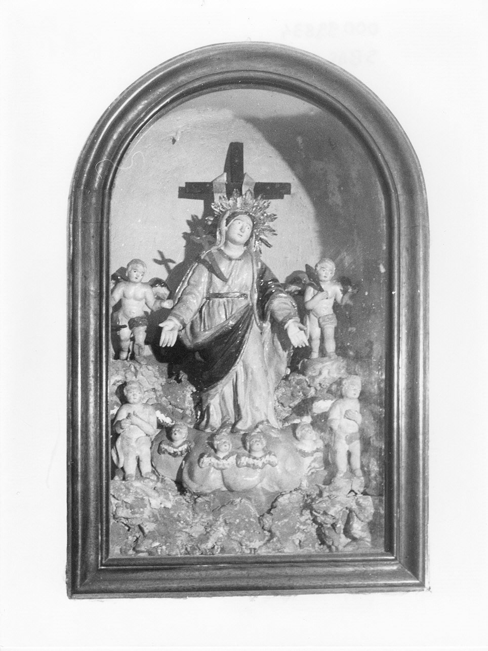 - NOTIZIE STORICO CRITICHE LA PICCOLA SCULTURA RIENTRA NELL'AMBITO DELLA PRODUZIONE POPOLARE DELLA CERAMICA SAVONESE E DI ALBISOLA. NELLA SECONDA META' DELL'800, ACCANTO ALLA PRODUZIONE DI STATUINE PER IL PRESEPE, VENIVANO ESEGUITI PICCOLI GRUPPI RIPRODUCENTI IMMAGINI SACRE, E, SOPRATTUTTO, LE "CASSE" DELLE CONFRATERNITE PORTATE IN PROCESSIONE IL VENERDI' SANTO. TALI GRUPPI ERANO SPESSO PROTETTI DA TECHE O CAMPANE DI VETRO O, COME IN QUESTO CASO, SISTEMATI IN NICCHIE. SI TRATTA DI UNA FORMA DI DEVOZIONE POPOLARE CHE SI AFFIANCA ALL'OPERA DI APOSTOLATO NEI CETI MENO ABBIENTI INTRAPRESA DALL'ORDINE CAPPUCCINO