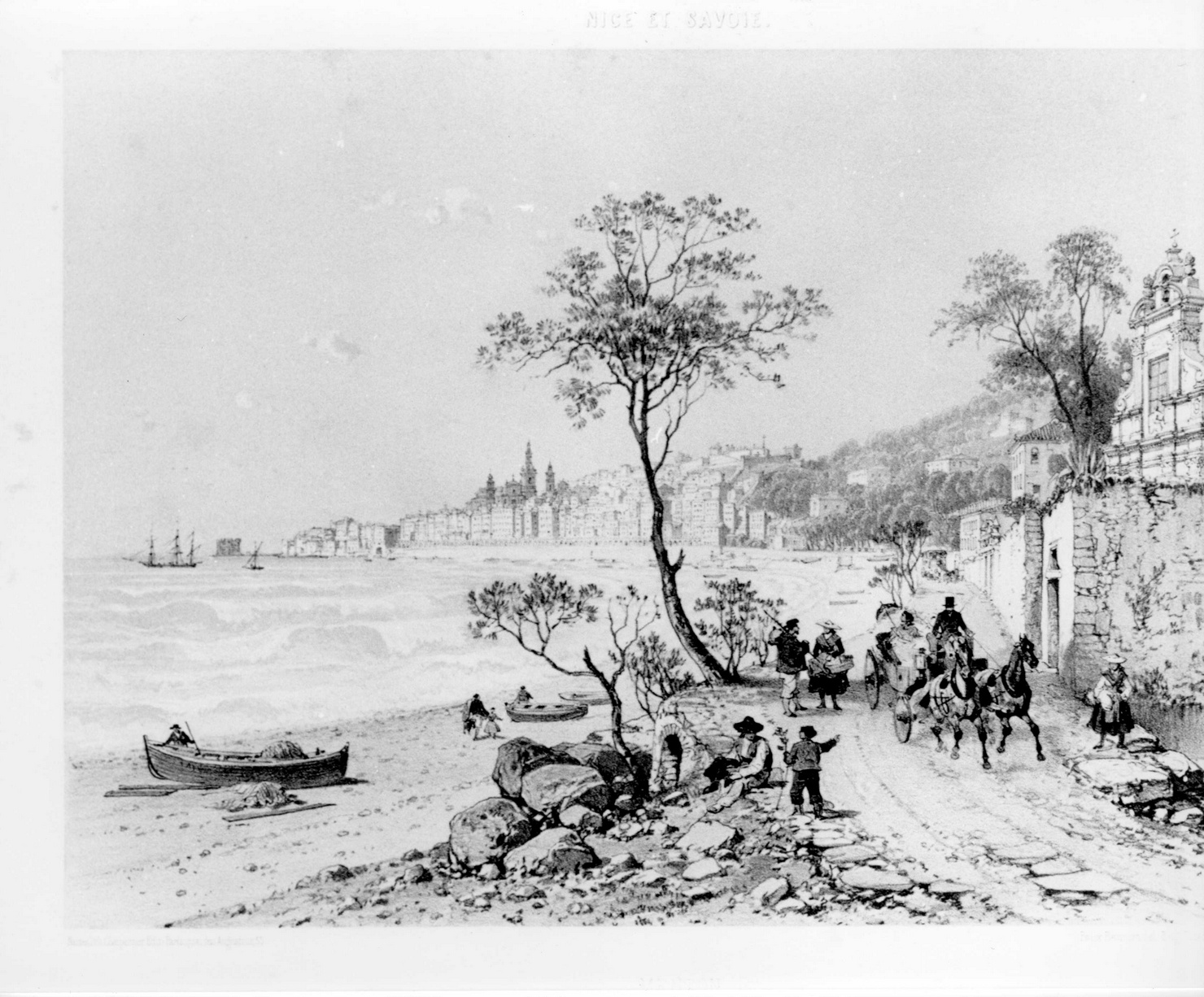 - NOTIZIE STORICO CRITICHE LA STRADA DELLA CORNICE CHE CORRE IN PROSSIMITà DELLA SPIAGGIA DI GARAVAN. SULLO SFONDO, ABBARBICCATA ALLA COLLINA, MENTONE, DOMINATA DALLA MOLE DELLA PARROCCHIALE DI SAINT-MICHEL CON I DUE CAMPANILI, AFFIANCATA DALL'ORATORIO DELLA IMMACOLATA CONCEZIONE. IN ALTO, IL CIMITERO INSEDIATOSI SULL'AREA DEL CASTELLO. PROTESO SUL MARE, IL FORTINO CINQUECENTESCO
