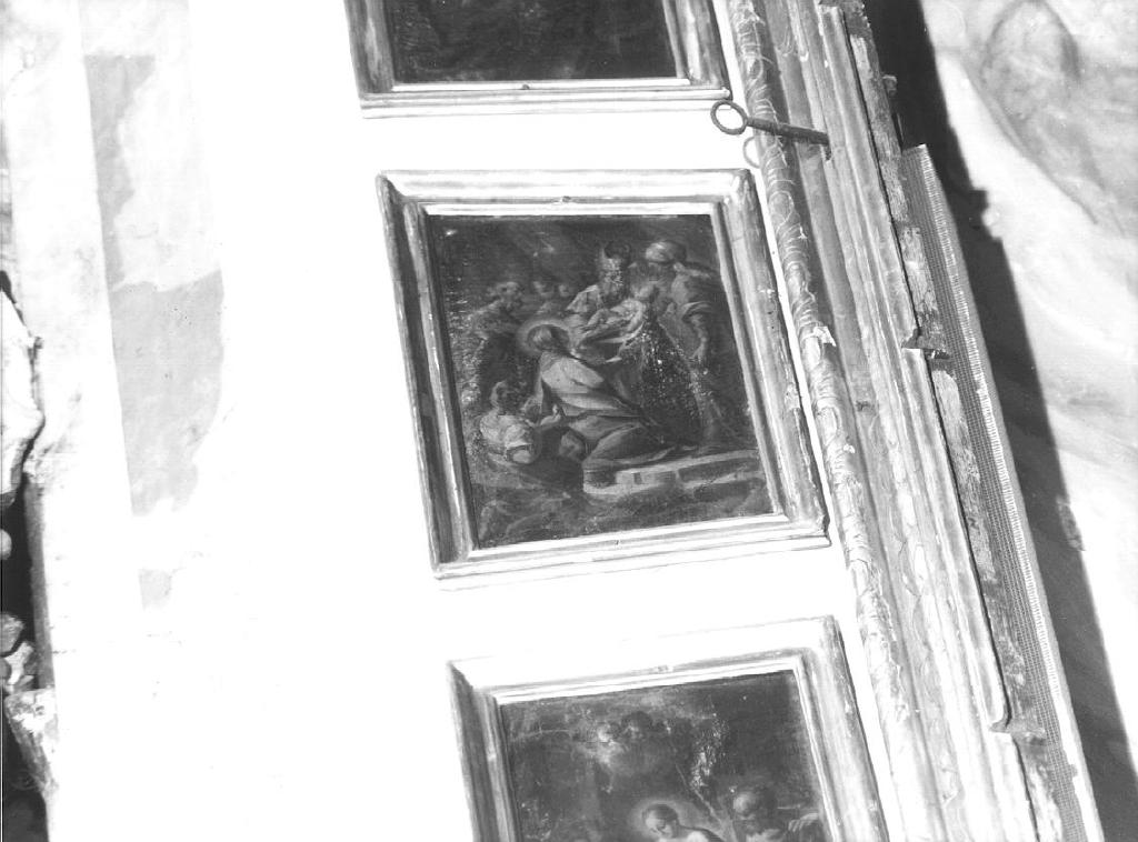 - NOTIZIE STORICO CRITICHE IL LIBRO DEI CONTI DELLA CHIESA REGISTRA IL PAGAMENTO AVVENUTO NEL 1760 A GIOVANNI AGOSTINO RATTI PER I QUADRETTI RAFFIGURANTI I MISTERI DEL ROSARIO (CFR. BIBLIOGRAFIA) COME AFFERMA GIUSTAMENTE ROSALINA COLLU, I DIPINTI SONO PENSATI QUALE CORONAMENTO DELLA SCENOGRAFIA DELL'ALTARE. DIPINTO DAL TRATTO SCIOLTO MA ELABORATO NELLA COMPOSIZIONE