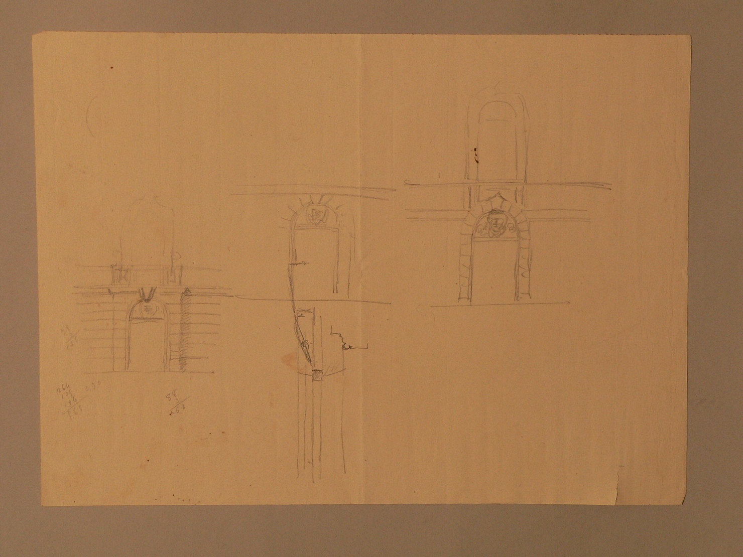 - NOTIZIE STORICO CRITICHE (RECTO) PROSPETTO DI UNA PORTA DEL BASAMENTO; (VERSO) STUDI DELLA PORTA DISEGNATA SUL RECTO
