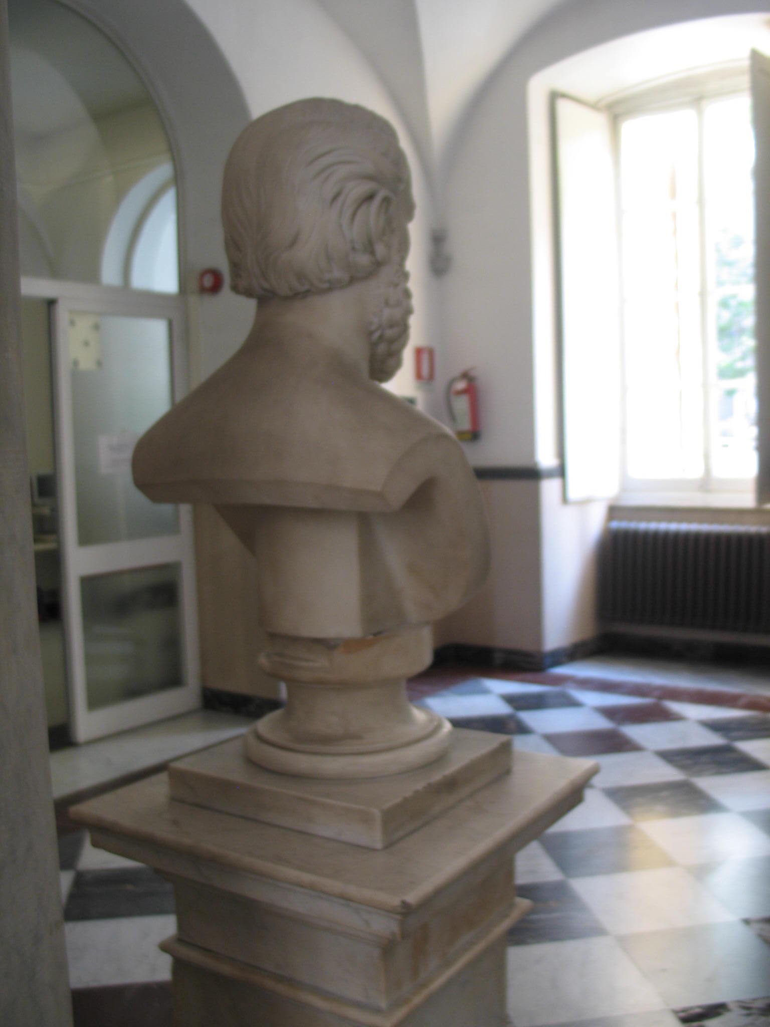 Questo busto è opera dello scultore genovese Giambattista Cevasco (1817-1891), datata 1874. Emerge tutta la solennità e l’imponenza della figura, raffigurata con tratti classici. il viso, i baffi, la folta barba, la capigliatura sono molto ben curati e resi dettagliatamente nel loro realismo. La levigatezza della superficie rende il tutto più nitido e più lucente; i volumi sono ben studiati e proporzionati. Le forme sono ben sagomate, sia nell'insieme che nel dettaglio, attestando così la cura e la precisione dell'artista esecutore