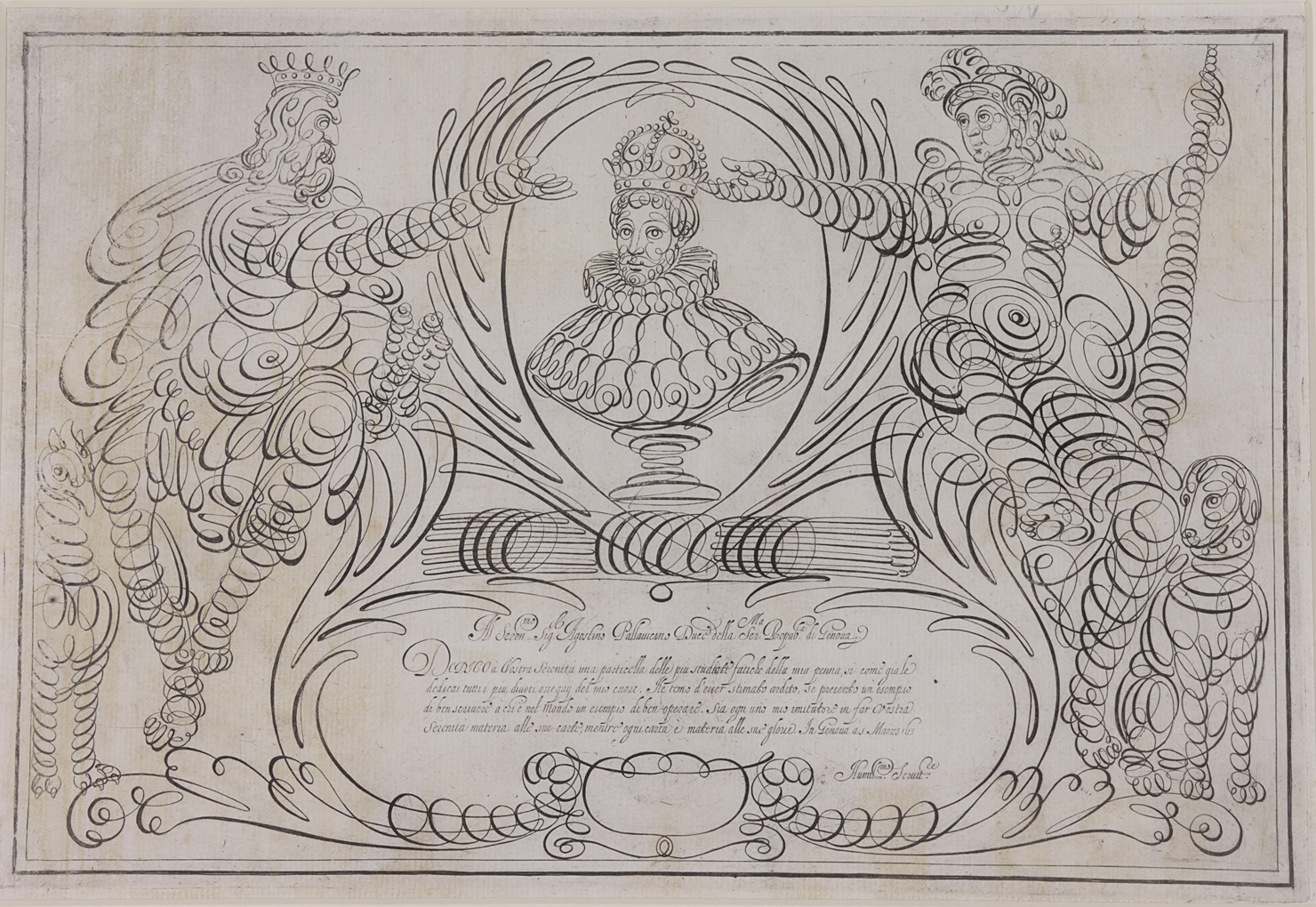 - ISCRIZIONI in basso - AL SEREN.MO SIG. AGOSTINO PALLAVICINO DUCE DELLA SER.MA REPUB.A DI GENOVA/ DEDICO A VOSTRA SERENITÀ UNA PARTICELLA DELLE PIÙ STUDIATE FATICHE DELLA MIA PENNA, SÌ COME GIÀ LE DEDICAII TUTTI I PIÙ DEVOTI OSSEQUJ DEL MIO CUORE. NÈ TEMO D’ESSER STIMATO ARDITO, SE PRESENTO UN ESEMPIO DI BEN SCRIVERE A CHI È NEL MONDO UN ESEMPIO DI BEN OPERARE. SIA OGN UNO MIO IMITATORE IN FAR VOSTRA SERENITÀ MATERIA ALLE SUE CARTE, MENTRE OGNI CARTA È MATERIA ALLE SUE GLORIE. IN GENOVA A 5 MARZO 163./ HUMIL.MO SERVIT.RE - corsivo -