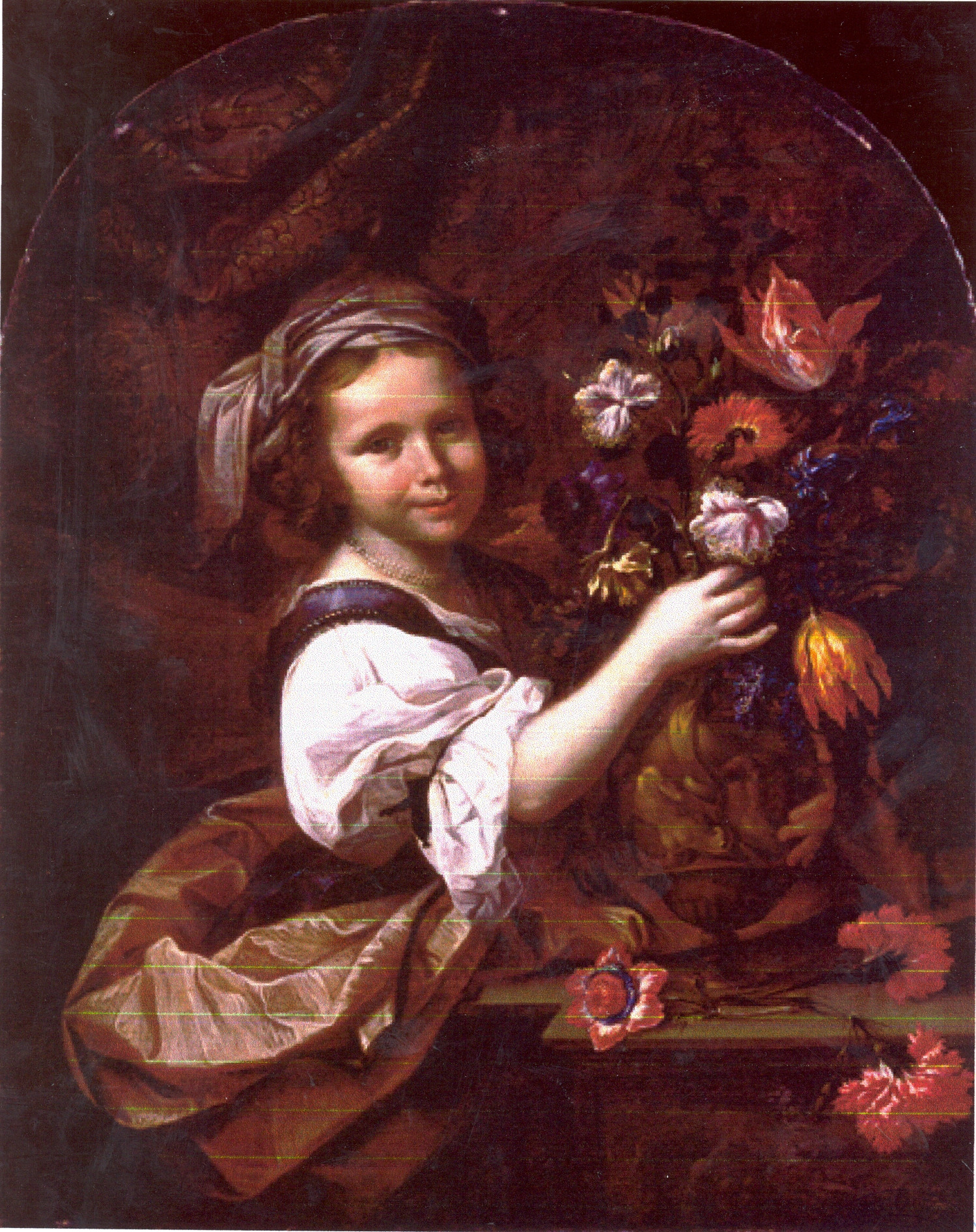 - NOTIZIE STORICO CRITICHE L'opera è passata sul mercato antiquario viennese come opera parziale di Mario dei Fiori, ovviamente per la presenza del tipico vaso con fiori. Il pittore di figura resta, invece, ancora ignoto. Proprio la priorità compositiva e la qualità notevole di questo ritratto rendono di grande interesse il poco noto dipinto, la cui impaginazione lascia intendere un guardare dell'inventore anche al mondo fiammingo