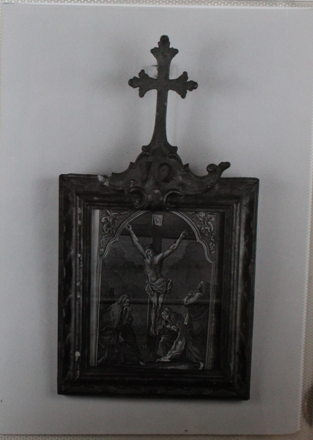 Personaggi: Gesù Cristo; Madonna; San Giovanni Evangelista; Santa Maria Maddalena. Attributi: (Gesù Cristo) corona di spine. Oggetti: croce. Abbigliamento all'antica