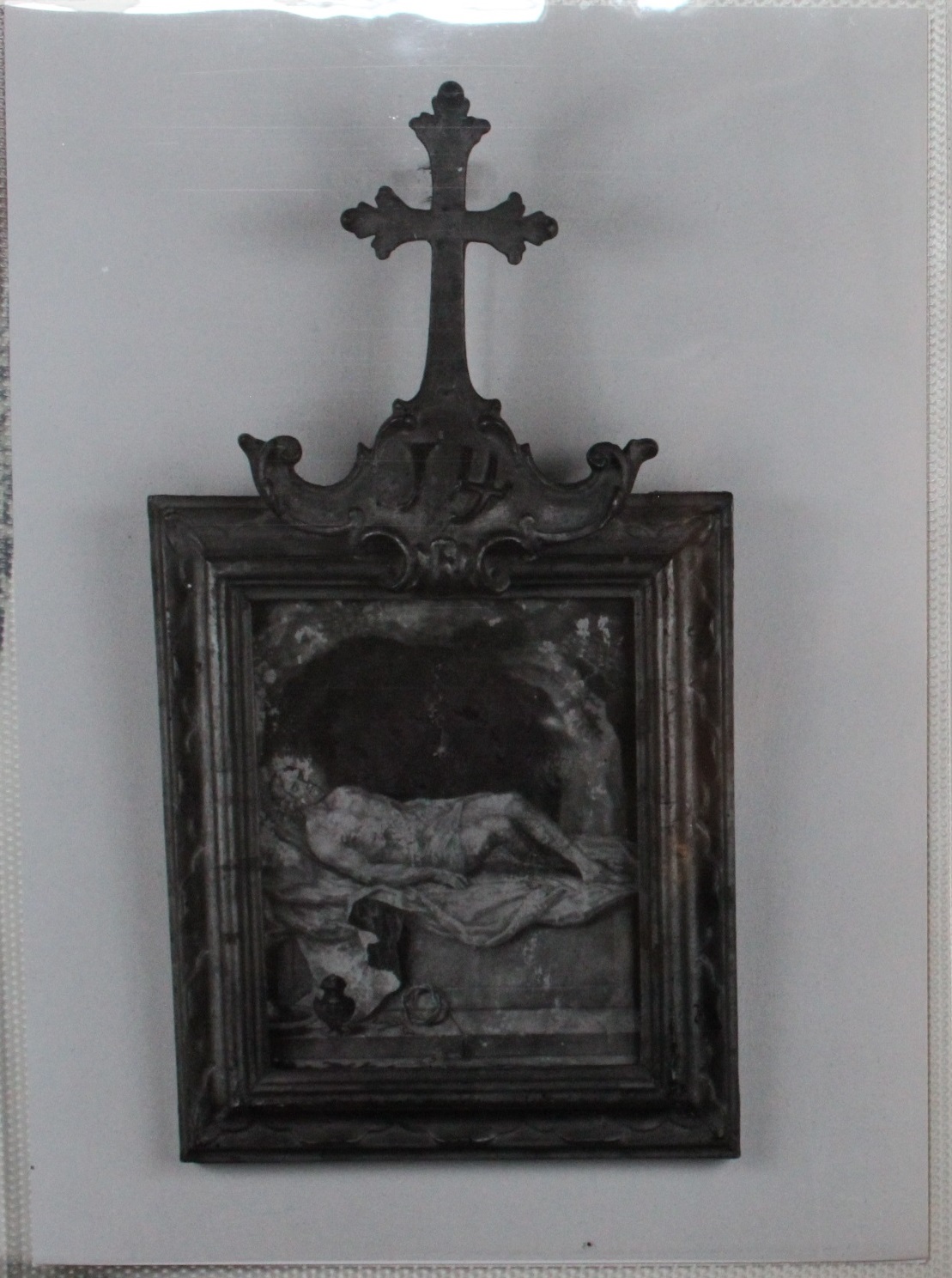 Personaggi: Gesù Cristo. Oggetti: bacile; pisside; chiodi; corona di spine