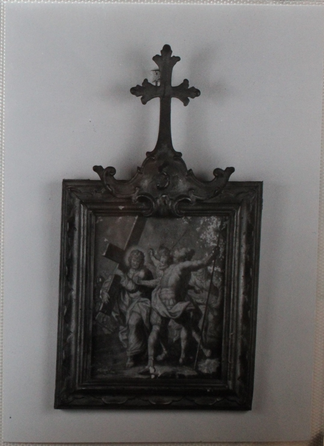 Personaggi: Gesù Cristo; Simone il Cireneo; soldati romani. Attributi: (Gesù Cristo) croce; corona di spine. Oggetti: lancia. Abbigliamento all'antica