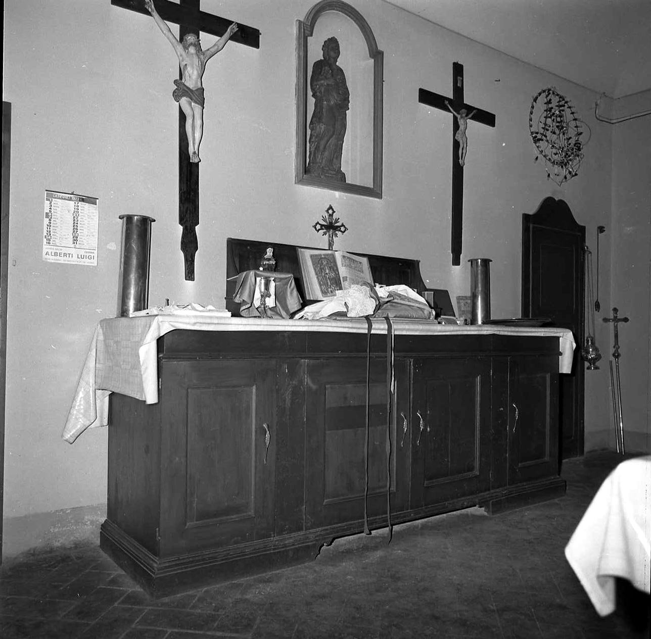 - NOTIZIE STORICO CRITICHE Nenzioni (1971): Si tratta di opera di un artista che sembra aver subito, in ritardo, l'influsso di Jacopo della Quercia e forse anche di Niccolò dell'Arca. Quasi certamente la statua in origine era collocata sulla porta d'ingresso della vecchia chiesa, all'esterno, e comunque doveva essere appoggiata ad un muro, come sembrano dimostrare la parte posteriore appena modellata e la grande apertura, pure posteriore. Seconda metà del secolo XV