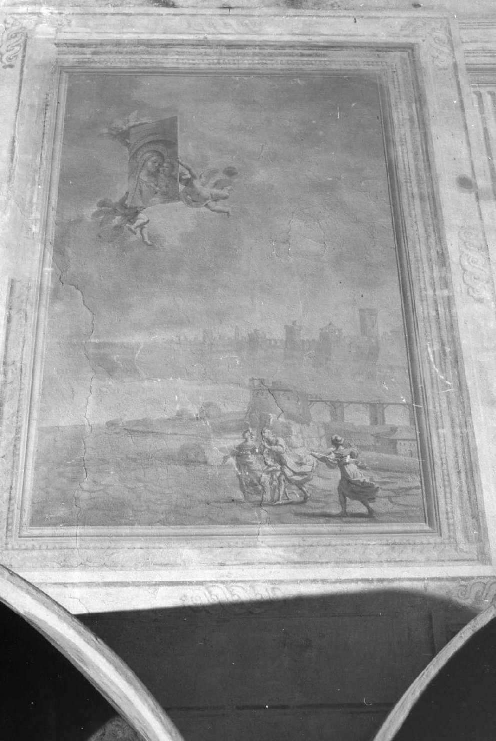 - NOTIZIE STORICO CRITICHE Le caratteristiche di scenograficità del paesaggio, il senso bozzettistico e teatrale dei gruppi di figurine, ben si attagliano all'attribuzione delle opere ad Antonio Bibiena, così come riportato da Astengo (1923). Gli affreschi furono probabilmente eseguiti dopo i lavori del teatro Comunale (1763) e prima della partenza di Bibiena per Mantova (1769)