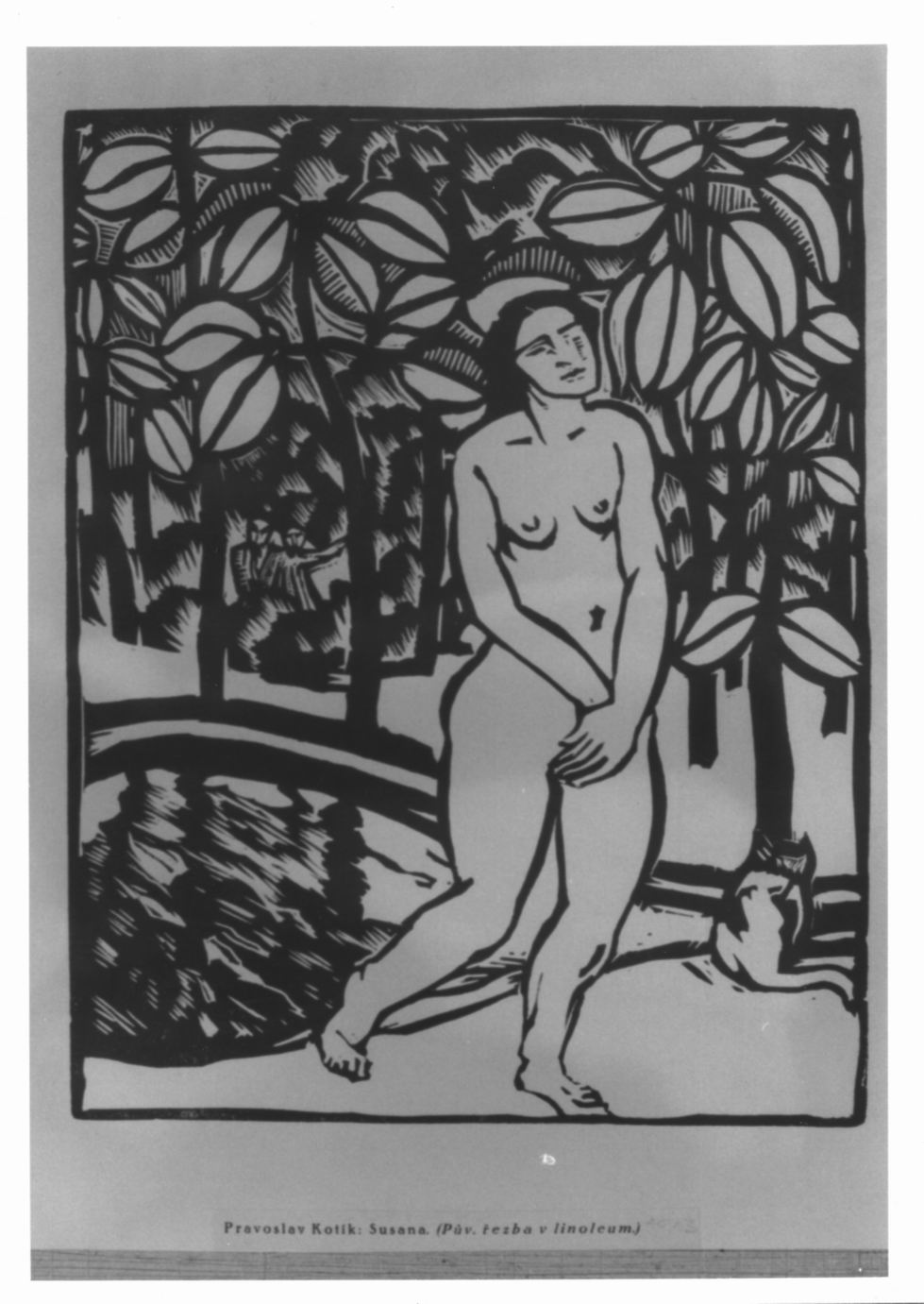 - ISCRIZIONI su carta applicata sul foglio in basso al centro - PRAVOSLAV KOTIK : SUSANNA (PUV REZBA V LINOLEUM) - stampato -