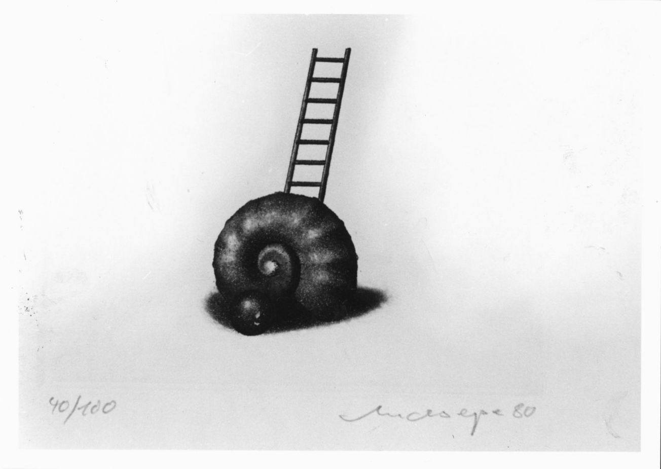 Reperti archeologici: ammonite. Oggetti: scala a pioli