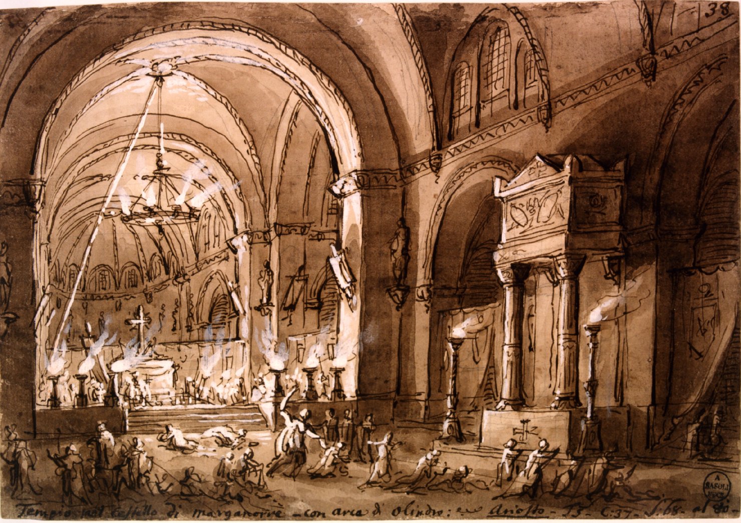 Tanacro coi suoi sicari uccide Olindo e rapisce sua moglie Drusilla. Tanacro uccide Olindo e rapisce Drusilla