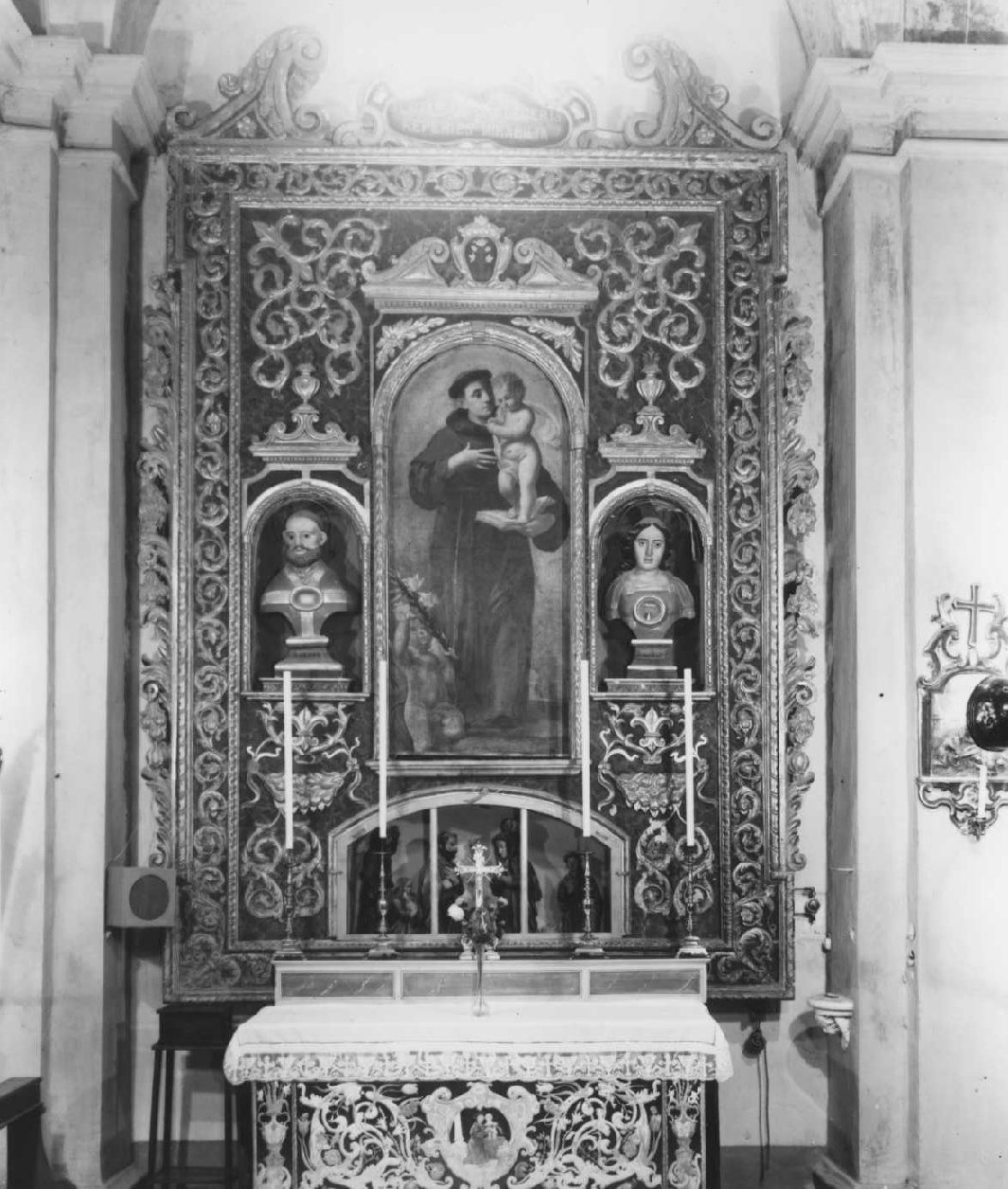 Su fondo nero, con motivi decorativi floreali a colori chiari; al centro è raffigurato S. Antonio da Padova col Bambino
