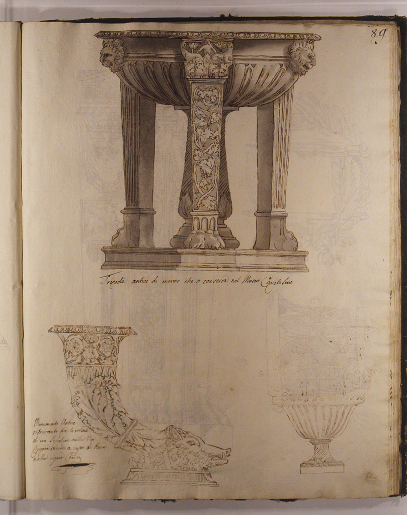 - NOTIZIE STORICO CRITICHE Le indicazioni dell'indice, riportate di seguito, espongono il soggetto raffigurato nella tavole 76-94: "Piranesi, Vasi e Candelabri Antichi, Sono parte Cenerari, Parte per abbiliamento, Bacanali, Tripodi, are, Cipi, Ossarie, Sarcofaghi, Candelabri, Lampane, Lucerne-"