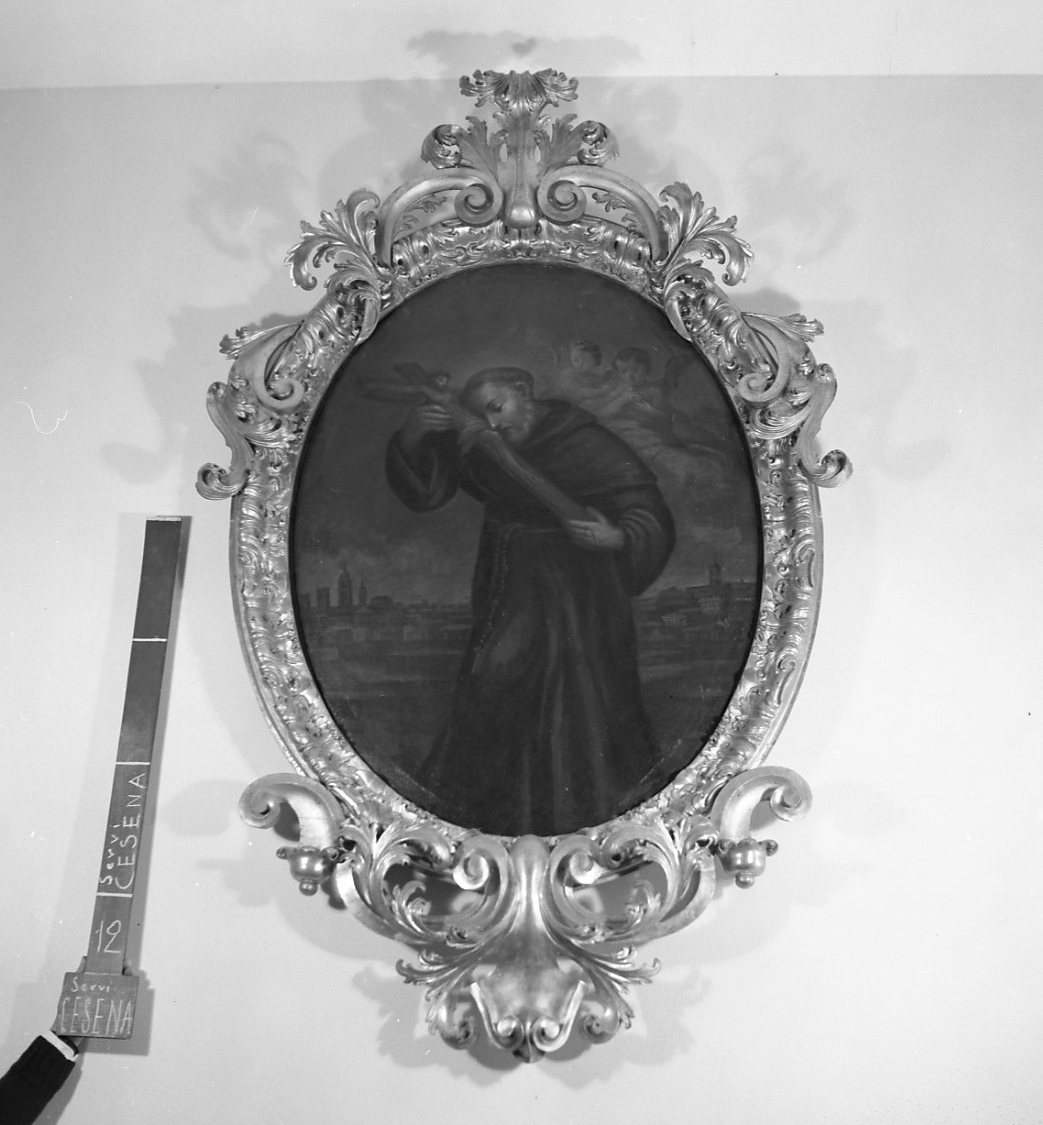 - NOTIZIE STORICO CRITICHE La tela è stata attribuita da Savini (1984, 1998) a Bonaventura Andreini, pittore che "ricalca meccanicamente, e con limiti ancor più vistosi le orme" del fratello Francesco, "in immagini che, grandi o piccole che siano, richiamano nella costante convenzionalità dei colori e degli atteggiamenti l'atmosfera solo zuccherosa di certi santini" (1998). Esiste una riproduzione esatta del dipinto in un'immagine a stampa, un esemplare della quale è conservato in Gioacchino Sassi, "Dipinti, sculture (...) esistenti nelle chiese della città e diocesi di Cesena (...)", Biblioteca Malatestiana di Cesena, ms. 164.70.9, p. 34. Le dimensioni di tale immagine sono cm 13 x 7.5. Reca scritte, nella parte inferiore, le parole: "B. Bartholomaeus a Cesena Ord. Serv. B.M.V. obiit An. 1329 - Fr. Benincasa Sassi Caesenatensis Ord. Serv. F.F. ex devotione"