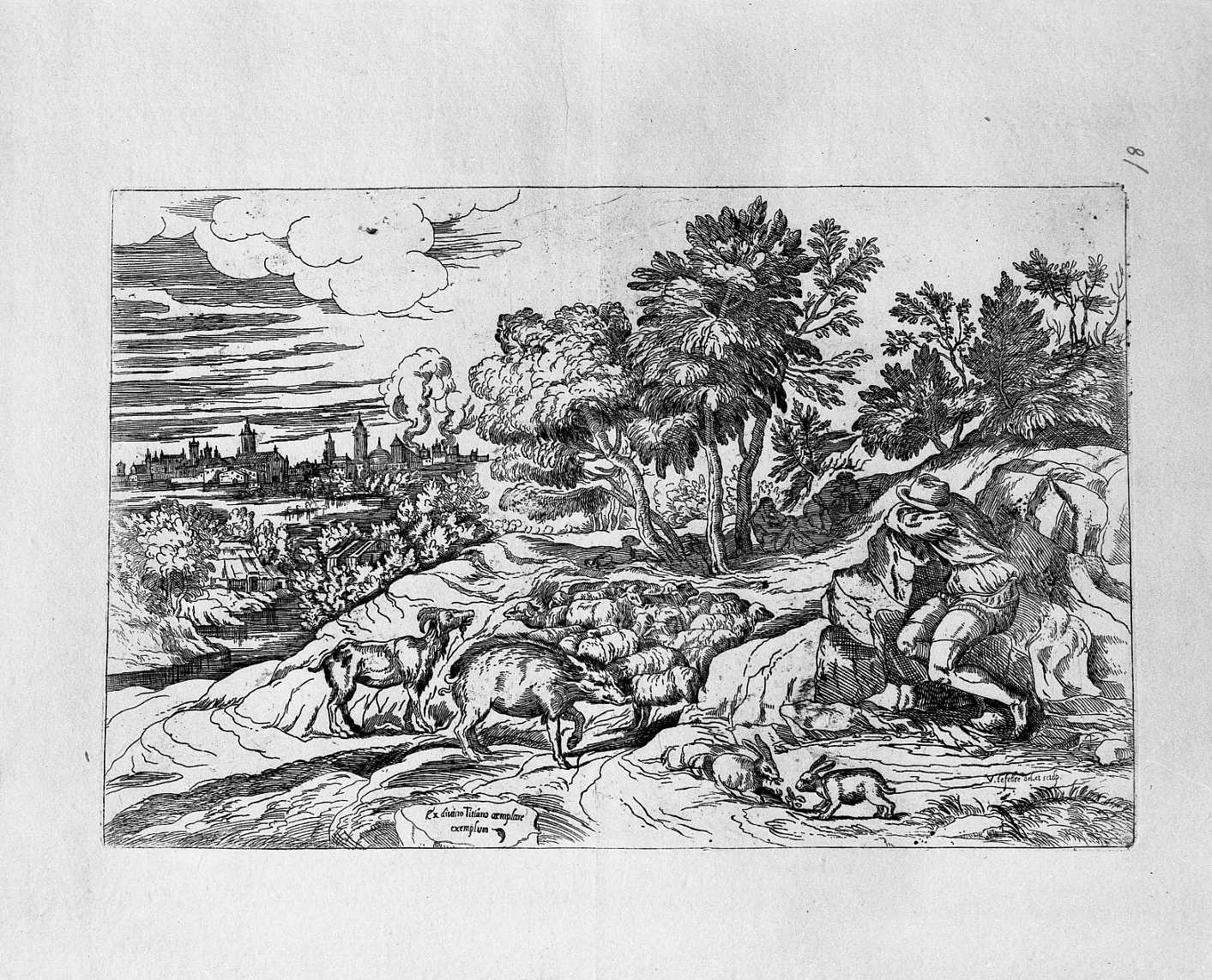 Paesaggi. Personaggi: pastore. Animali: capra; lepre; maiale; pacora