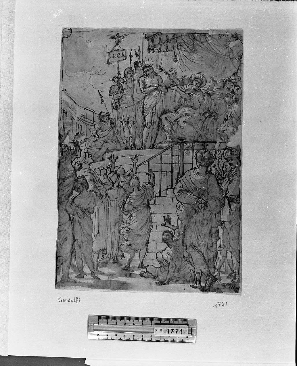 Disegno rappresentante Cristo mostrato al popolo da Pilato