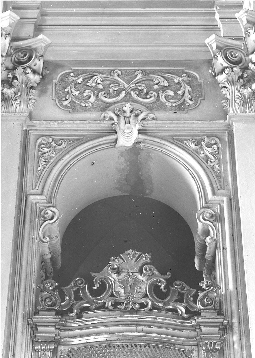 I ripari dei coretti sono costituiti da una base rettangolare bombata con riquadratura profilata da una cornice dorata su base laccata in bianco. Ai lati due paraste sporgenti, pure profilate. Sulla base si innesta la grata ai cui lati sono semplici lesene con un piccolo capitello a coronamento. Al di sopra della trabeazione in legno è una cimasa, con specchio centrale sagomato co riccioli ai lati
