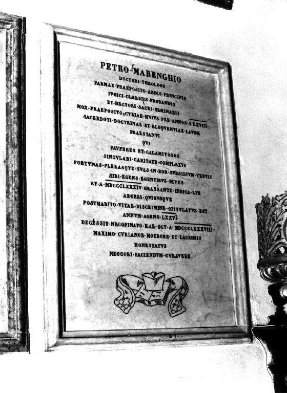 - ISCRIZIONI PETRO. MARENGHIO/ DOCTORI. THEOLOGO/ PARMAE. PRAEPOSITO. AEDIS. PRINCIPIS/ - lettere capitali -