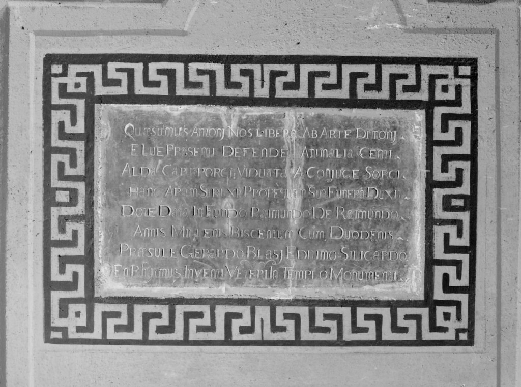 - NOTIZIE STORICO CRITICHE La lapide proviene dalla primitiva chiesa di S.Biagio