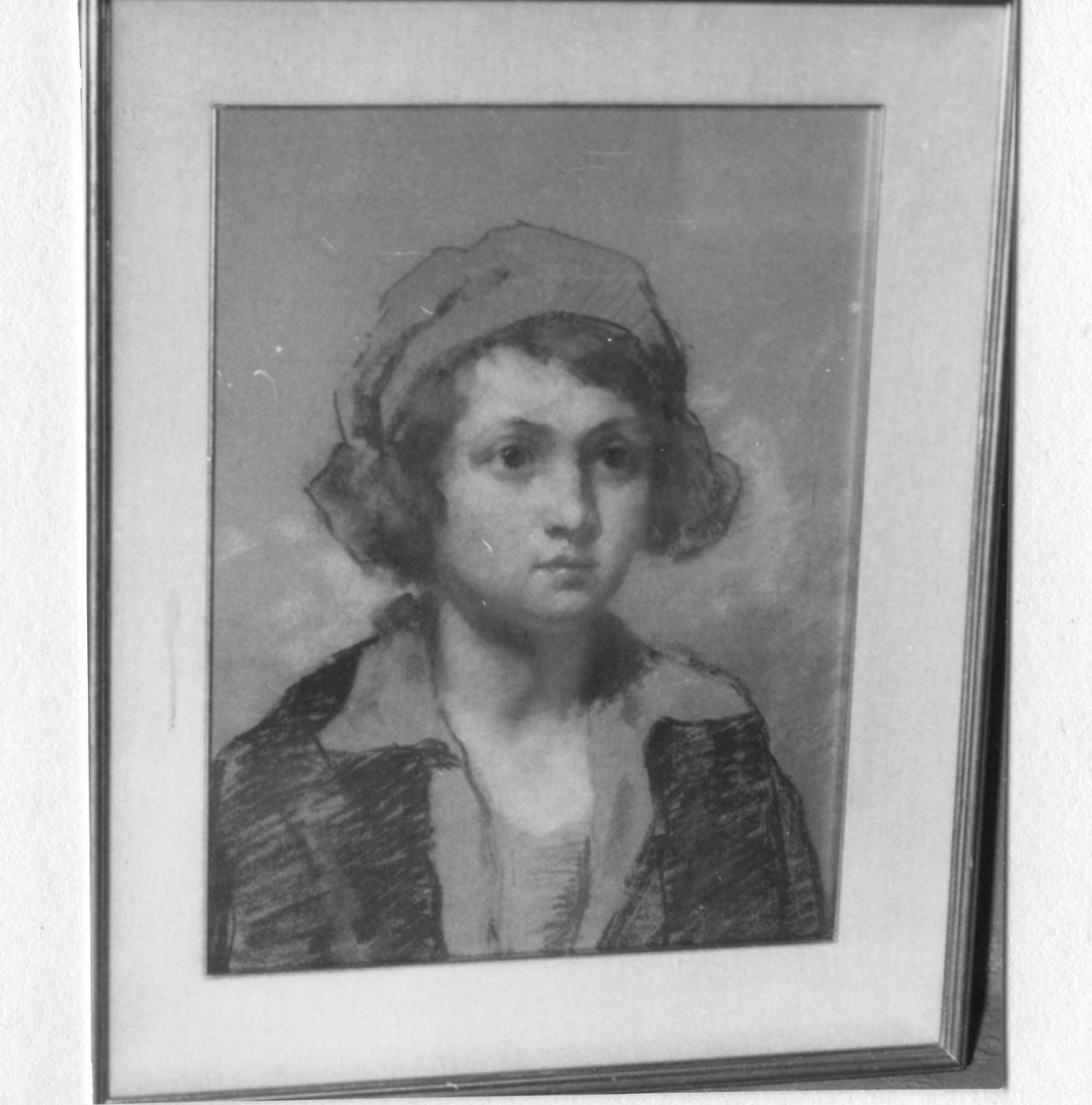 Ritratto a mezzo busto di bambina, di prospetto. L'effigiata è leggermente rivolta a destra; indossa giacca nera, camicia con risvolti verde pallido e porta sul capo una berretta rossa. Il fondo giallo della materia di preparazione è lumeggiato con colpi di grigio. La cornice è moderna