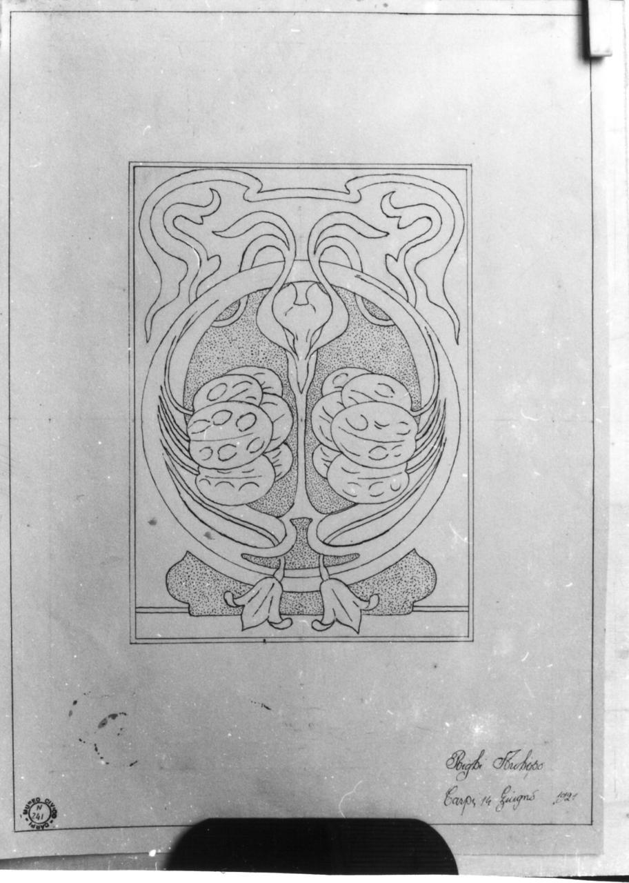 Disegno a inchiostro su carta al tratto. Composizione con decorazione di tipo floreale