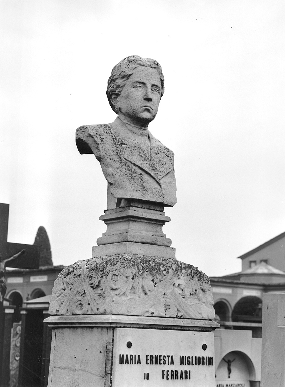 - NOTIZIE STORICO CRITICHE Sebbene questo monumento funerario sia privo di firma, è possibile attribuirlo alla ditta Malfanti Perotti mediante un confronto con altre analoghe realizzazioni dello scultore Perotti. Infatti se il busto sembra avvicinarsi alla stessa cifra riassuntiva che rifiuta ogni compiacimento calligrafico del monumento Roncaglia, allo stesso modo il basamento a cuscino di fiori recupera una soluzione stilistica già adottata nel monumento Olcelli, eseguito nei primissimi anni '20. Siamo quindi di fronte ad una produzione del Perotti che dimostra come anche nel momento in cui lo scultore si avvicinava di più ai consueti busti ritratto, pure i suoi modi mostravano una "lingua" ben identificabile