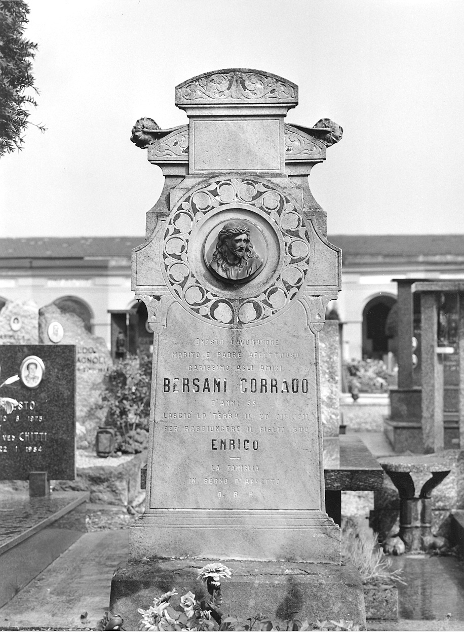 - ISCRIZIONI al centro - ONESTO LAVORATORE/ MARITO E PADRE AFFETTUOSO/ CARISSIMO AGLI AMICI/ BERSANI CORRADO/ D'ANNI 55/ LASCIO' LA TERRA IL 20 DIC. 1911/ PER RAGGIUNGERE IL FIGLIO SUO/ ENRICO/ LA FAMIGLIA/ IN SEGNO D'AFFETTTO/ G. R. P - lettere capitali - a incisione -