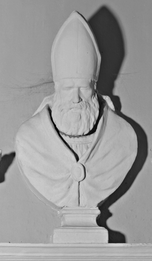 - NOTIZIE STORICO CRITICHE Quarto dei busti posti al centro dei sovvrapporta. Le sculture sono considerate da Rezio Buscaroli (scheda storica del 1933) opere del'inzio dell'Ottocento, realizzate da uno scultore accademico ancora legato alla tradizione settecentesca. Lo studioso avanza dubitativamente il nome del bolognese Giacomo Rossi (1751/ 1817)