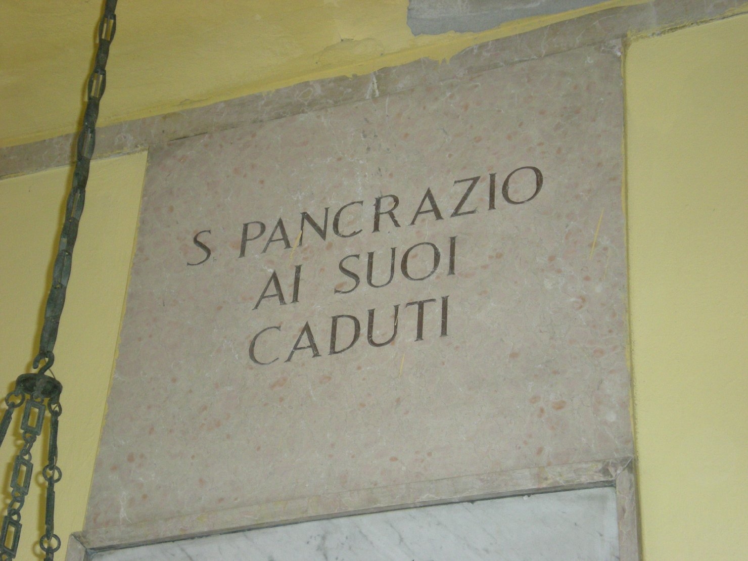• NOTIZIE STORICO CRITICHE Questo piccolo monumento, formato dall'unione di tre lapidi, ricorda i caduti di San Pancrazio, delegazione di Parma che ha il suo cimitero nella località di Valera. Le lapidi in esame sono un esempio tipico della tipologia dei monumenti ai caduti, ovvero la semplicità nella composizione e l'assenza di elementi decorativi