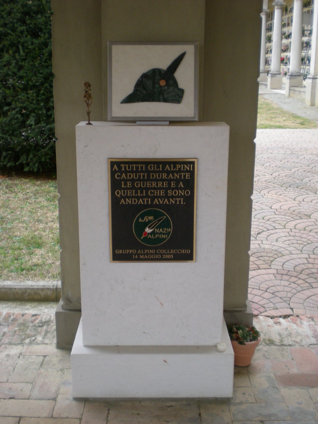 - ISCRIZIONI al centro, a tutto campo - A TUTTI GLI ALPINI/ CADUTI DURANTE/ LE GUERRE E A/ QUELLI CHE SONO/ ANDATI AVANTI/ GRUPPO ALPINI COLLECCHIO/ 14 MAGGIO 2005 - lettere capitali -