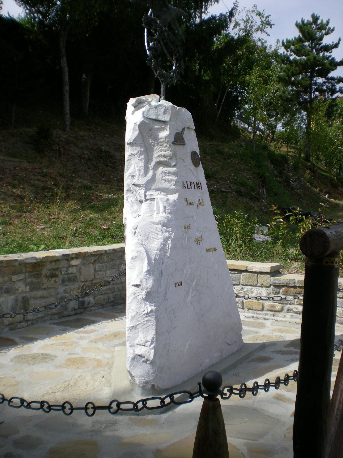 - ISCRIZIONI al centro, a tutto campo - ALPINI/ UNA FEDE/ IERI/ OGGI/ SEMPRE/ 2007 - lettere capitali - a incisione -